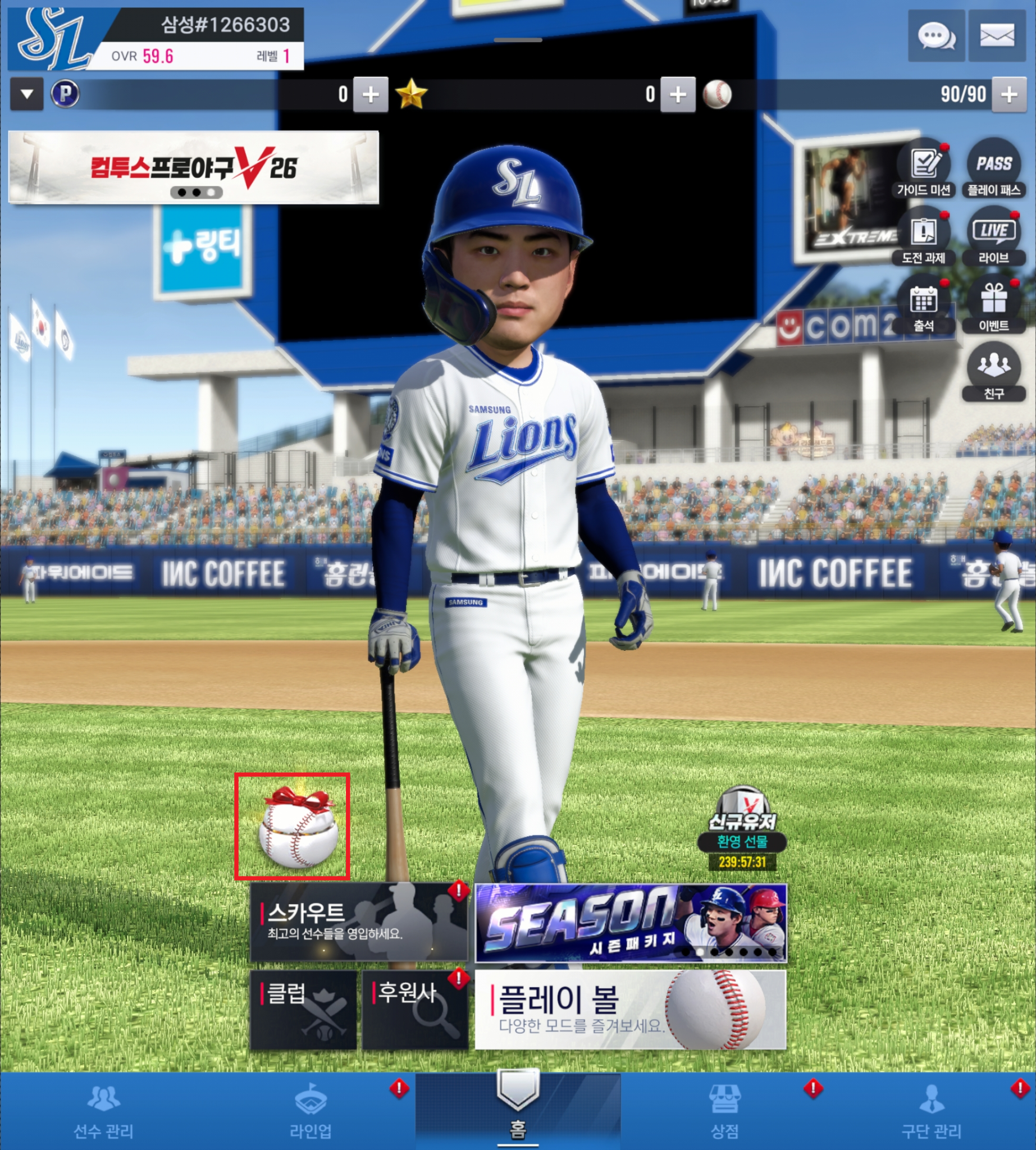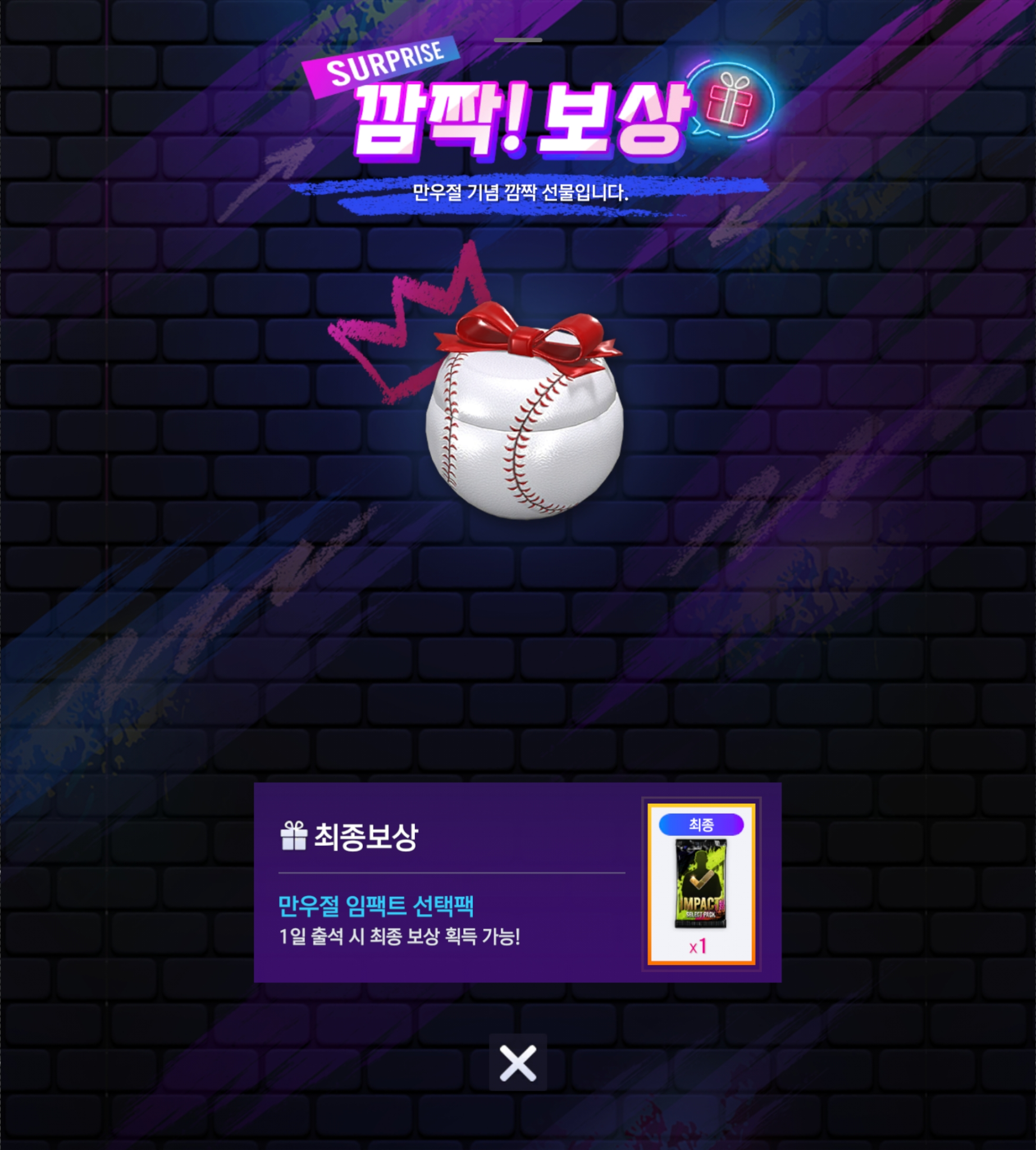 ※ 로비의 야구공 모양을 터치하여 [만우절 임팩트 선택팩]도 받아가세요!