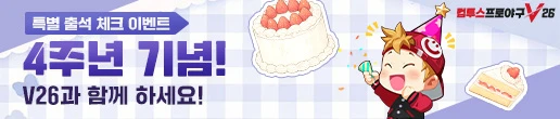 구단주님들과 컴프야V가 함께한 지 4년째 되는 날을 기념하기 위해 특별 출석 체크 이벤트를 준비했습니다.