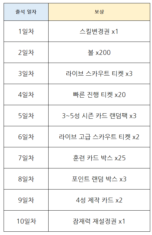 ※ 이벤트 기간 동안 10일 출석 시, 모든 선물을 획득할 수 있습니다.