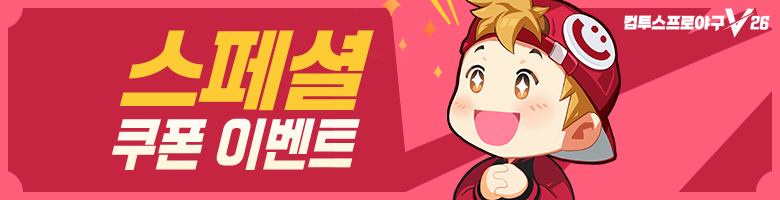컴투스프로야구V26 쿠폰 교환소 사이트를 통하여 직접 입력하실 수 있습니다. [쿠폰 교환소 사이트 바로가기]