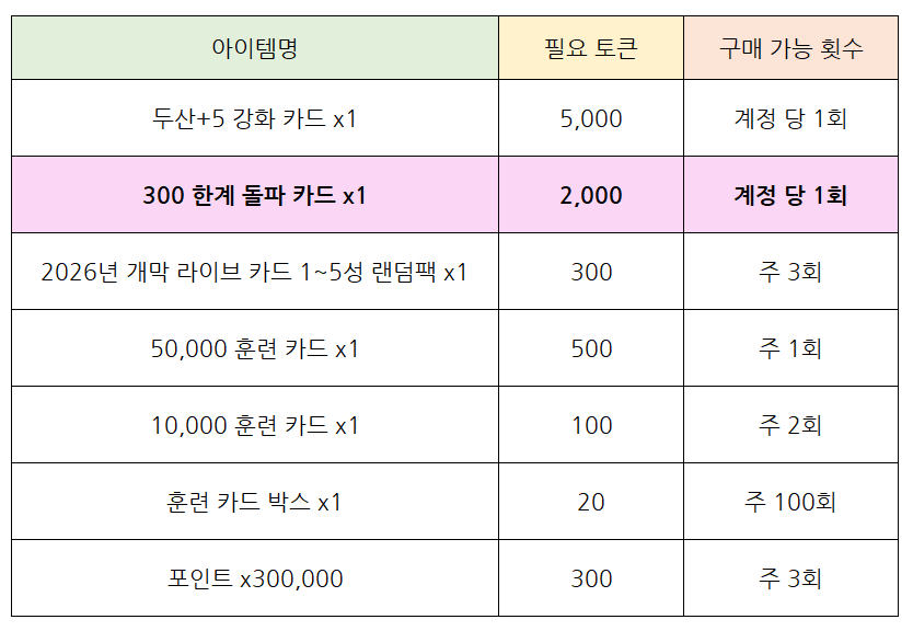 - 획득한 이벤트 토큰을 이벤트 상점에서 사용하여 다양한 보상을 획득할 수 있습니다.