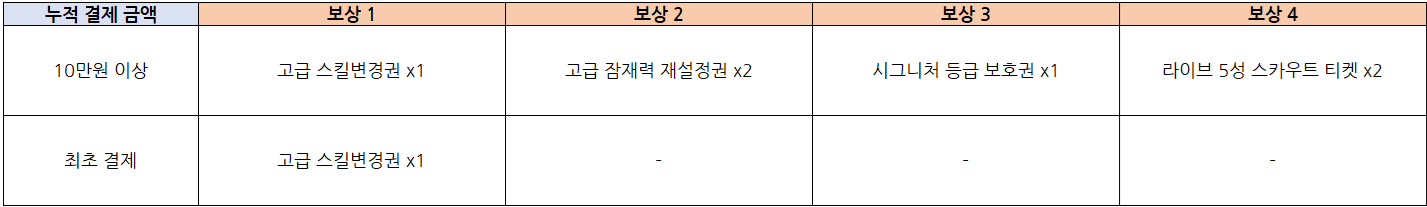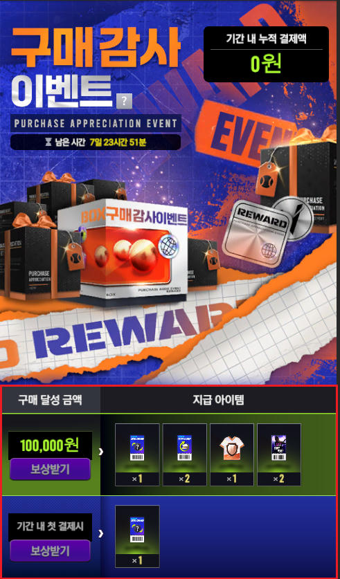 EX) 누적 결제 금액 10만원 이상 시 ‘모든 보상’ 획득 가능