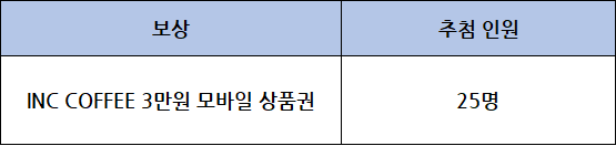 추첨을 통해 [INC COFFEE 3만원 상품권]을 드립니다.