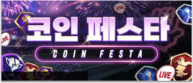 - 챌린지 코인, 클럽 코인, 홈런 코인, 라이브 코인, 조커 코인 중 1종류를 획득할 수 있습니다.