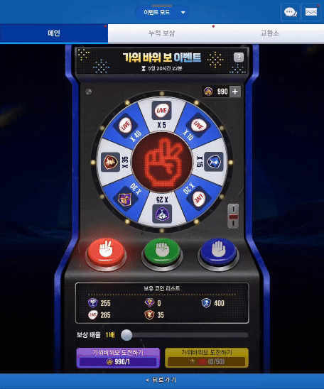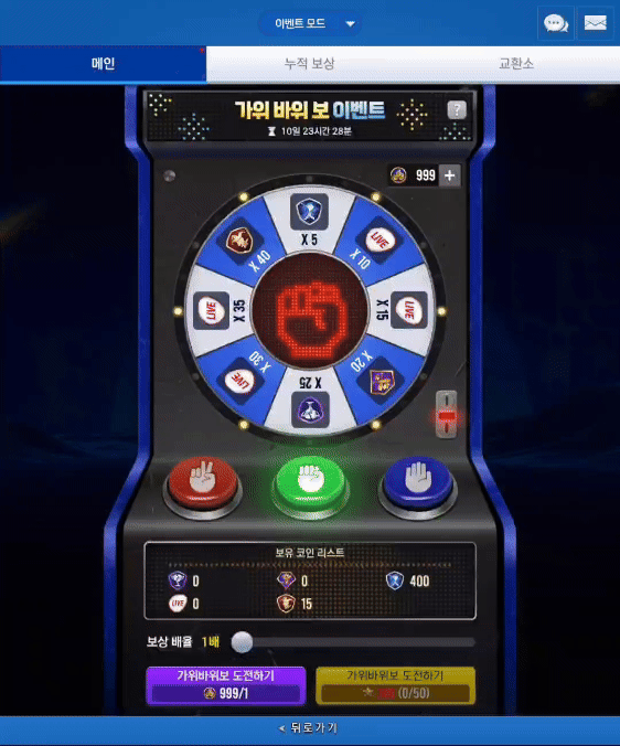 - 이제 보상 배율을 설정하여 최대 10개의 가위바위보 이용권을 사용하실 수 있으며, 보상 또한 배율에 맞게 증가합니다.