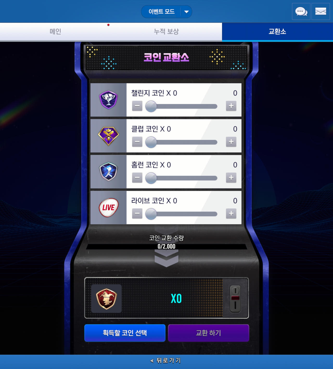 * 교환 가능한 코인 : 챌린지 코인, 클럽 코인, 홈런 코인, 라이브 코인, 조커 코인