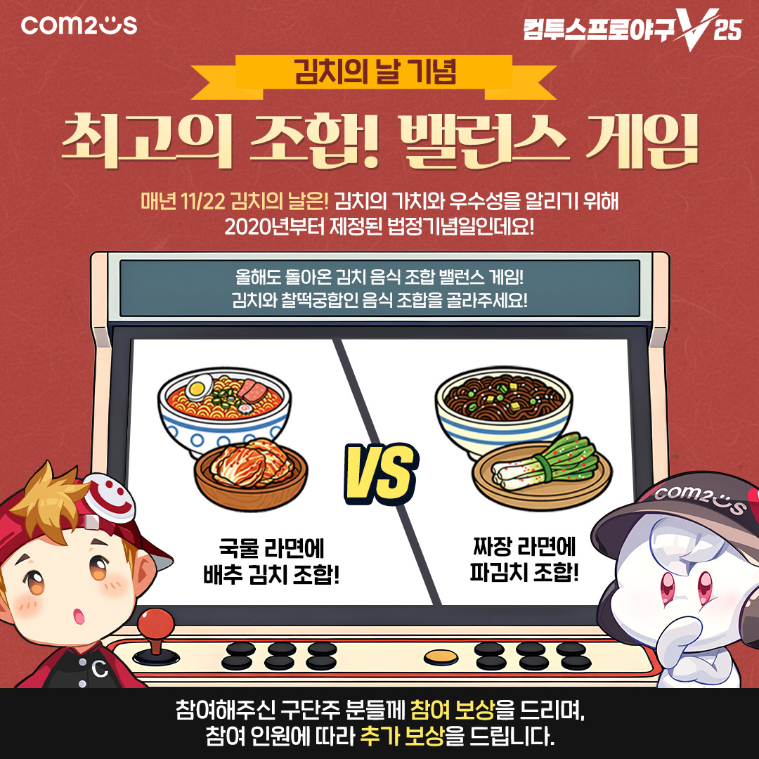 [이벤트] 김치의 날 기념! 최고의 조합 밸런스 게임 이벤트 안내[~11/29(토) 23:59]
