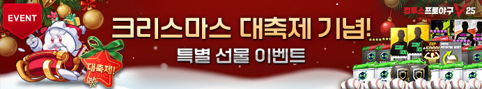 - 크리스마스 대축제 기념 선물 상자는 기간 내 게임에 접속한 구단주님께 지급되며 계정 당 1회만 지급됩니다.