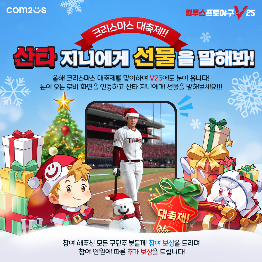 ※ 게임 내 산타 모자를 쓴 주장 선수와 눈이 오는 배경은 12/29 23:59에 접속 하여 게임을 진행하실 경우 확인하실 수 있습니다!