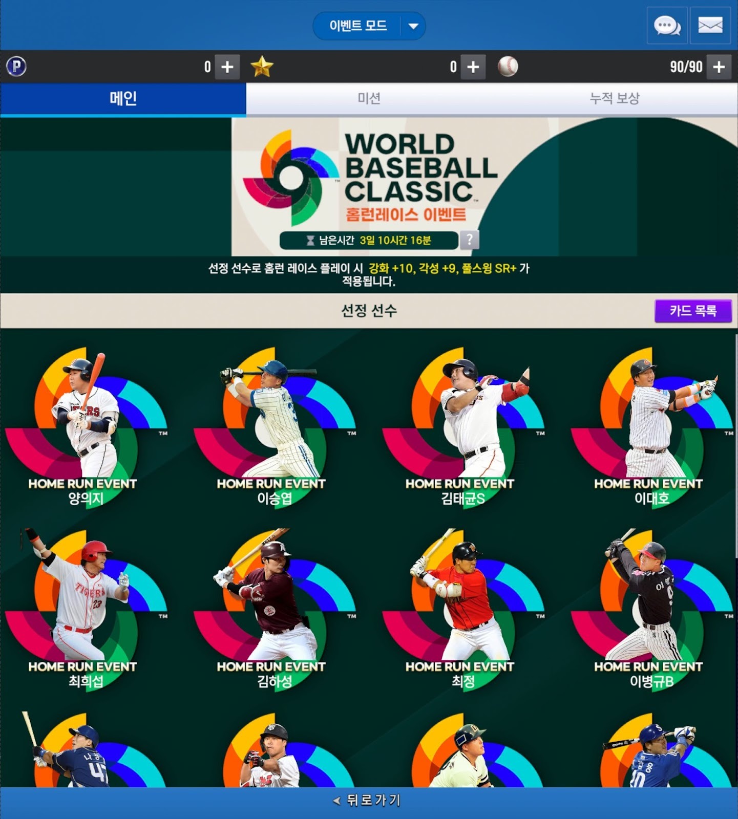 * 2026 World Baseball Classic 기념 홈런 레이스 이벤트는 메인 화면 [이벤트] 메뉴에서 확인하실 수 있습니다.