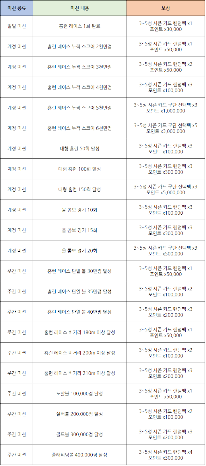 - 누적 스코어 미션은 이벤트 오픈 후 진행된 홈런 레이스 스코어부터 반영됩니다.