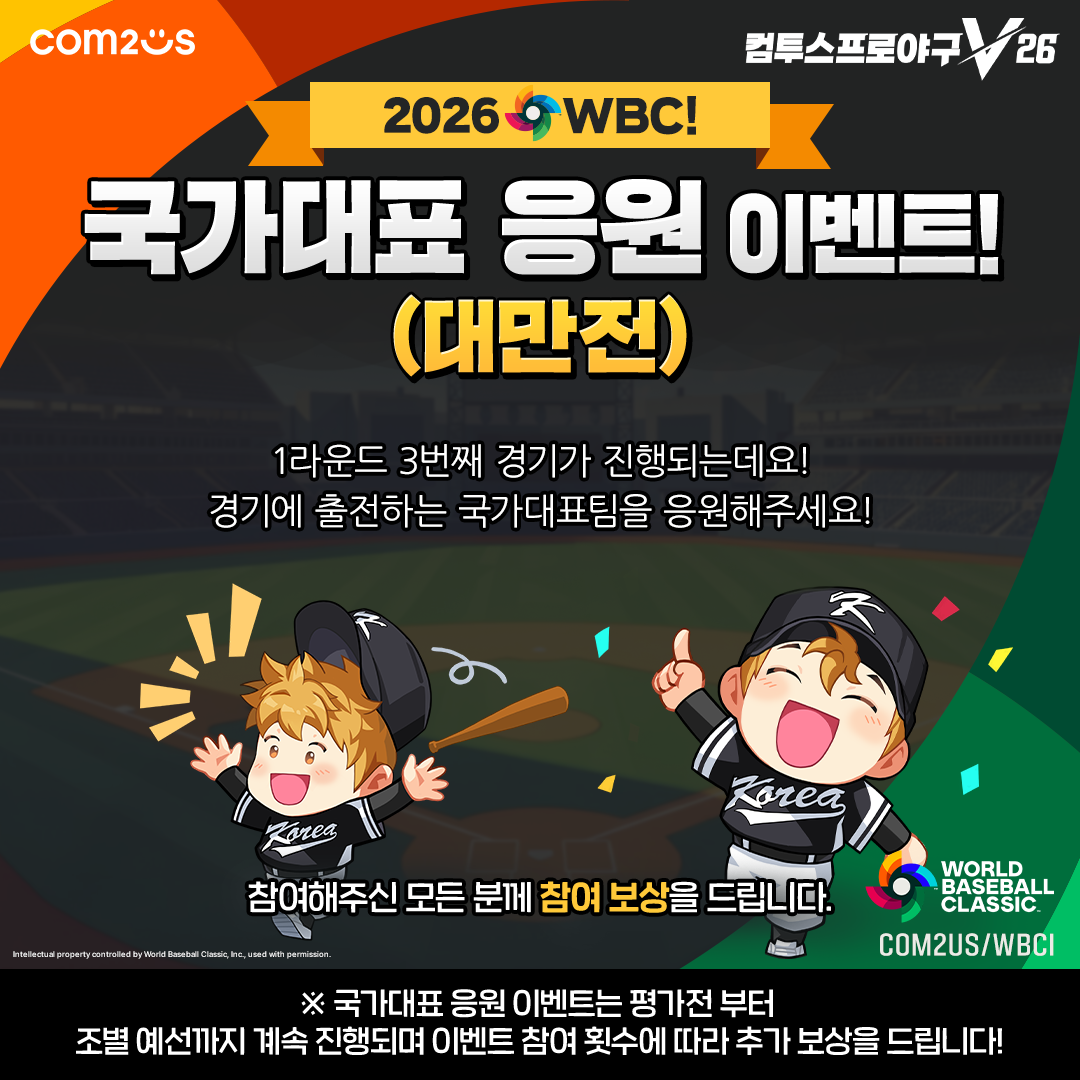 [이벤트] 2026 World Baseball Classic 기념 국가대표 응원 이벤트(대만전) 안내 [03/19(목) 참여 횟수 보상 지급 완료]