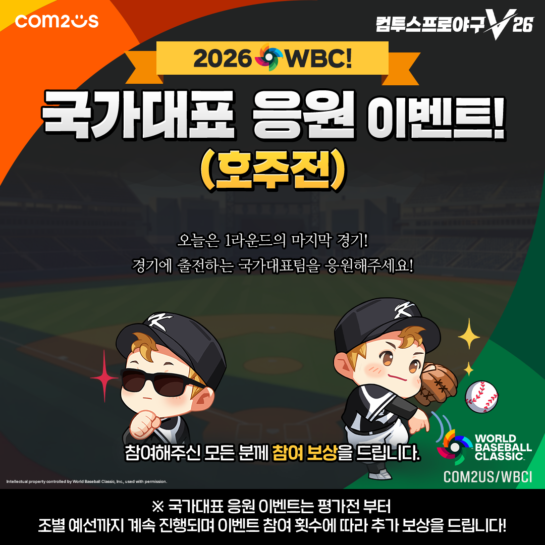 [이벤트] 2026 World Baseball Classic 기념 국가대표 응원 이벤트(호주전) 안내 [03/19(목) 참여 횟수 보상 지급 완료]