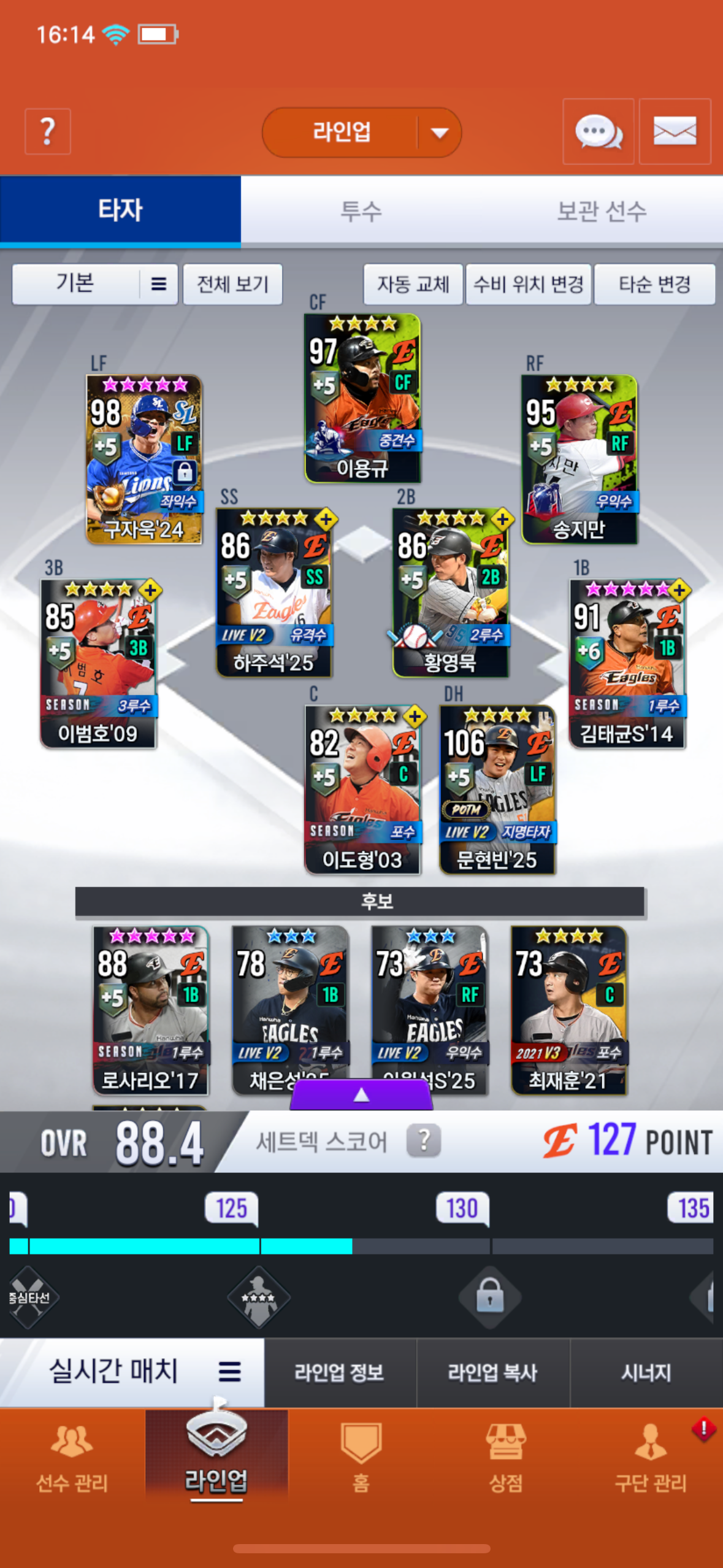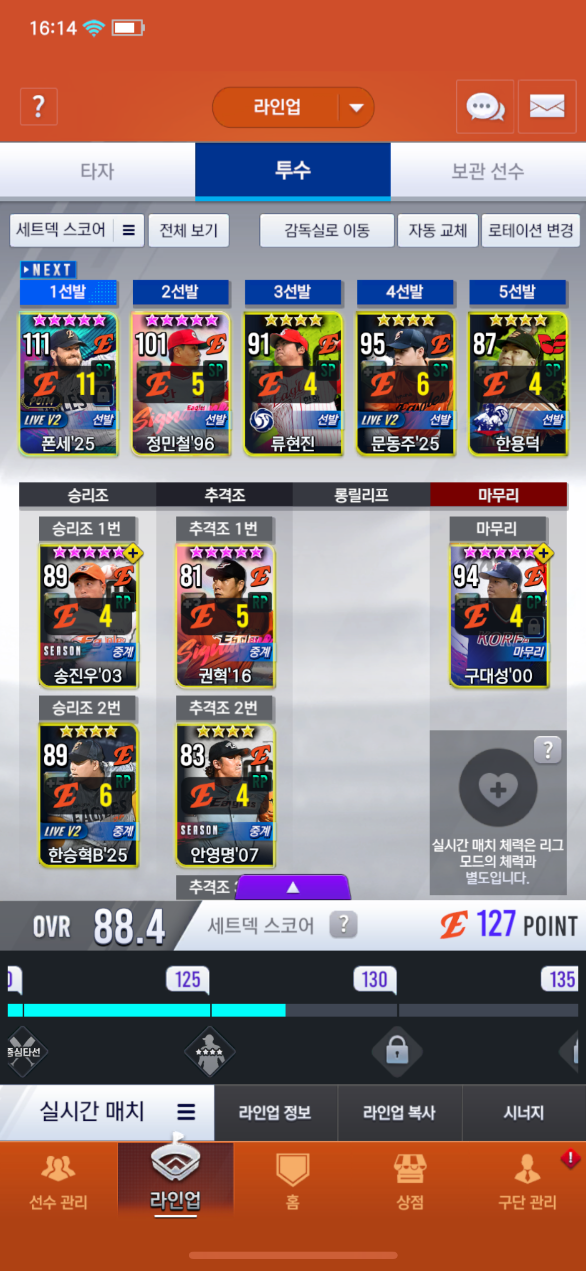 마지막 사진은 이번 플레이오프 폰세의 활약을 기대하며 고급 스카우트권 보상으로 받은 라이브 폰세 등장순간을 캡쳐한 사진입니다 ㅎㅎ