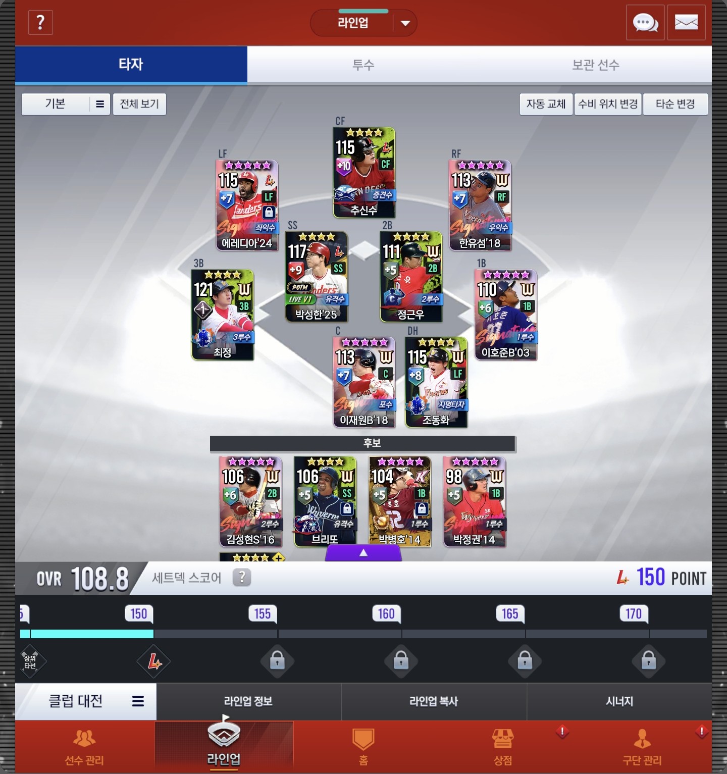 안녕하세요! 저는 컴투스프로야구V25를 정말 열심히 플레이하고 있는 유저이자, SSG랜더스를 열렬히 응원하는 야구팬 ‘도라지탕’입니다. 저는 약 1년 반 정도 된 54레벨, 오버롤 108의 와이번스-랜더스 낭만덱을 운영 중이며, 특히 실시간 매치를 가장 즐겨 하는 편입니다.