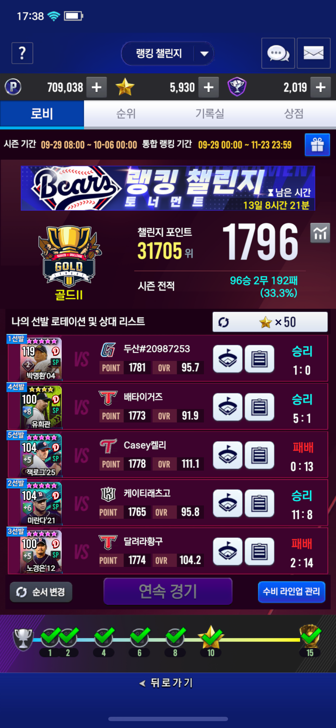 조합 컨텐츠 외에도, 저는 [랭킹챌린지] 컨텐츠를 즐겨 하는 것 같습니다!