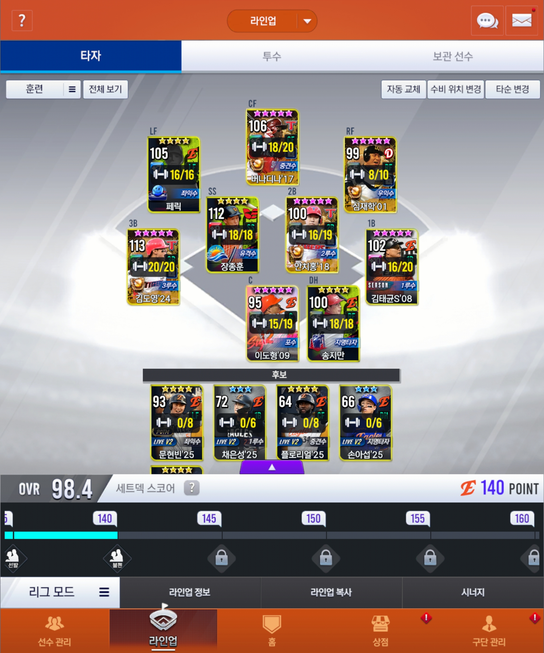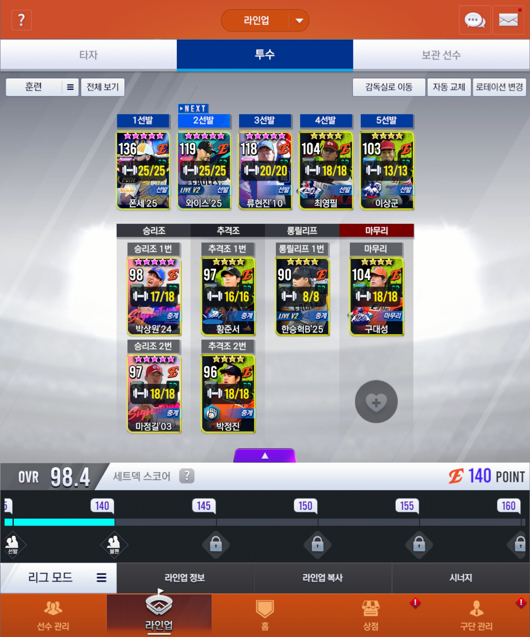 특히 1, 2선발은 25/25 만렙 훈련으로 든든함을 더합니다.