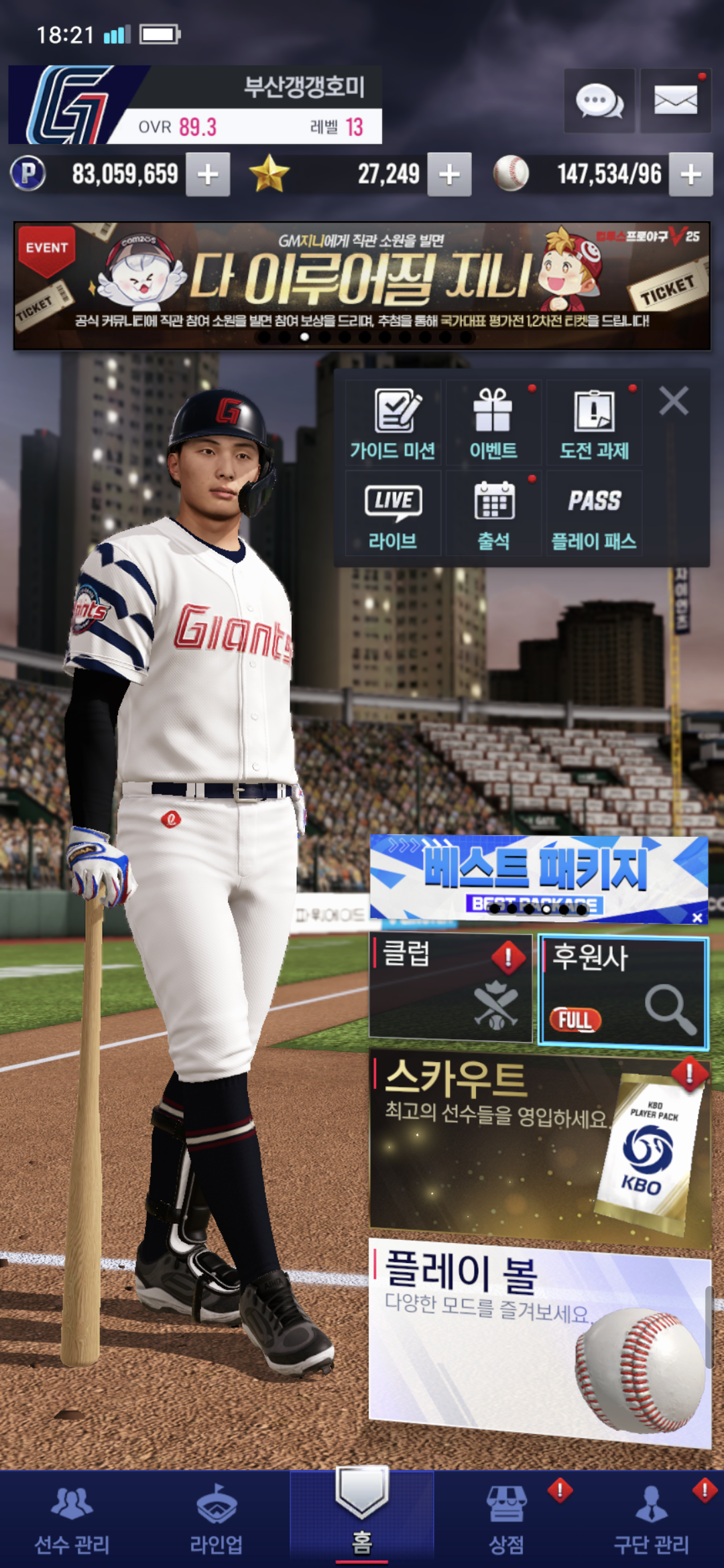 롯데 자이언츠 팬이자 저의 V25 구단명:부산갱갱호미