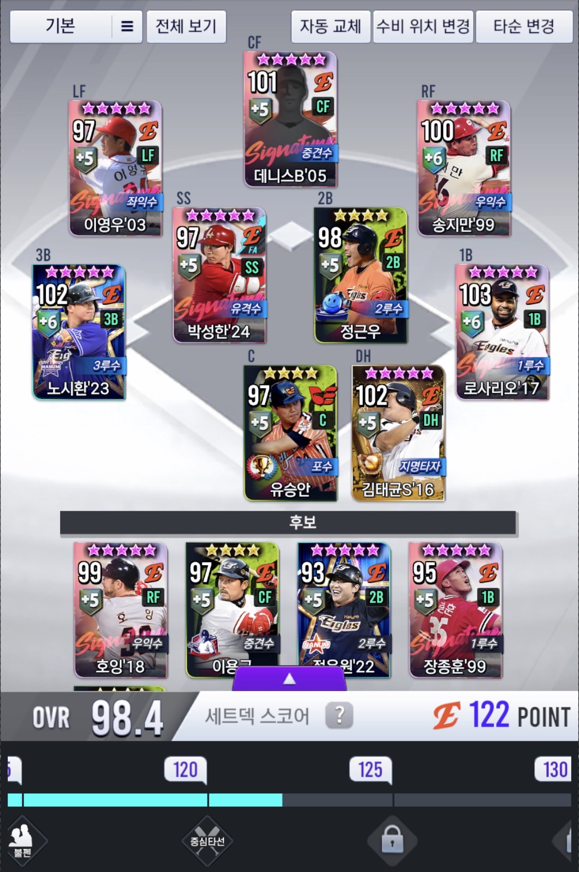 그리고 이벤트, 스카우트 있을 때마다 한화 선수들을 뽑으려고 스타 다 써버린다.