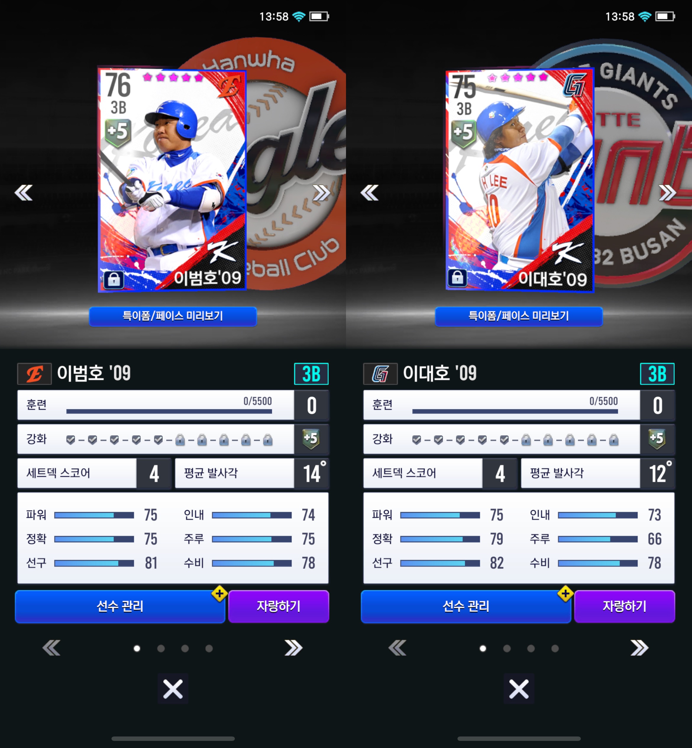2009년 결승전까지 진출하였으나 아쉽게 준우승에 머물렀지만, 정말 졌지만 잘 싸웠다라는 말을 들을 만 했던 2009 WBC 대표팀으로 활약했었던 이대호 선수, 그리고 제가 좋아하는 한화이글스에서 활약했던 이범호 선수의 카드를 보유하고 있습니다.