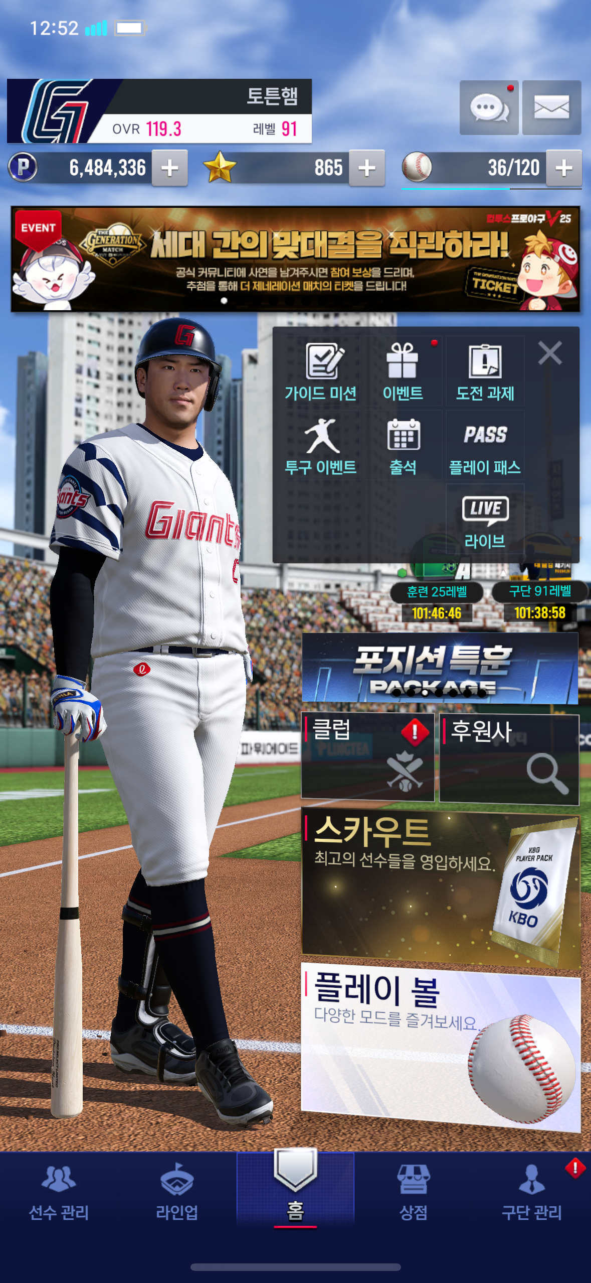 안녕하세요! 컴투스프로야구 V25를 3년 동안 즐기고 있는 91레벨 롯데 덱 구단주입니다.