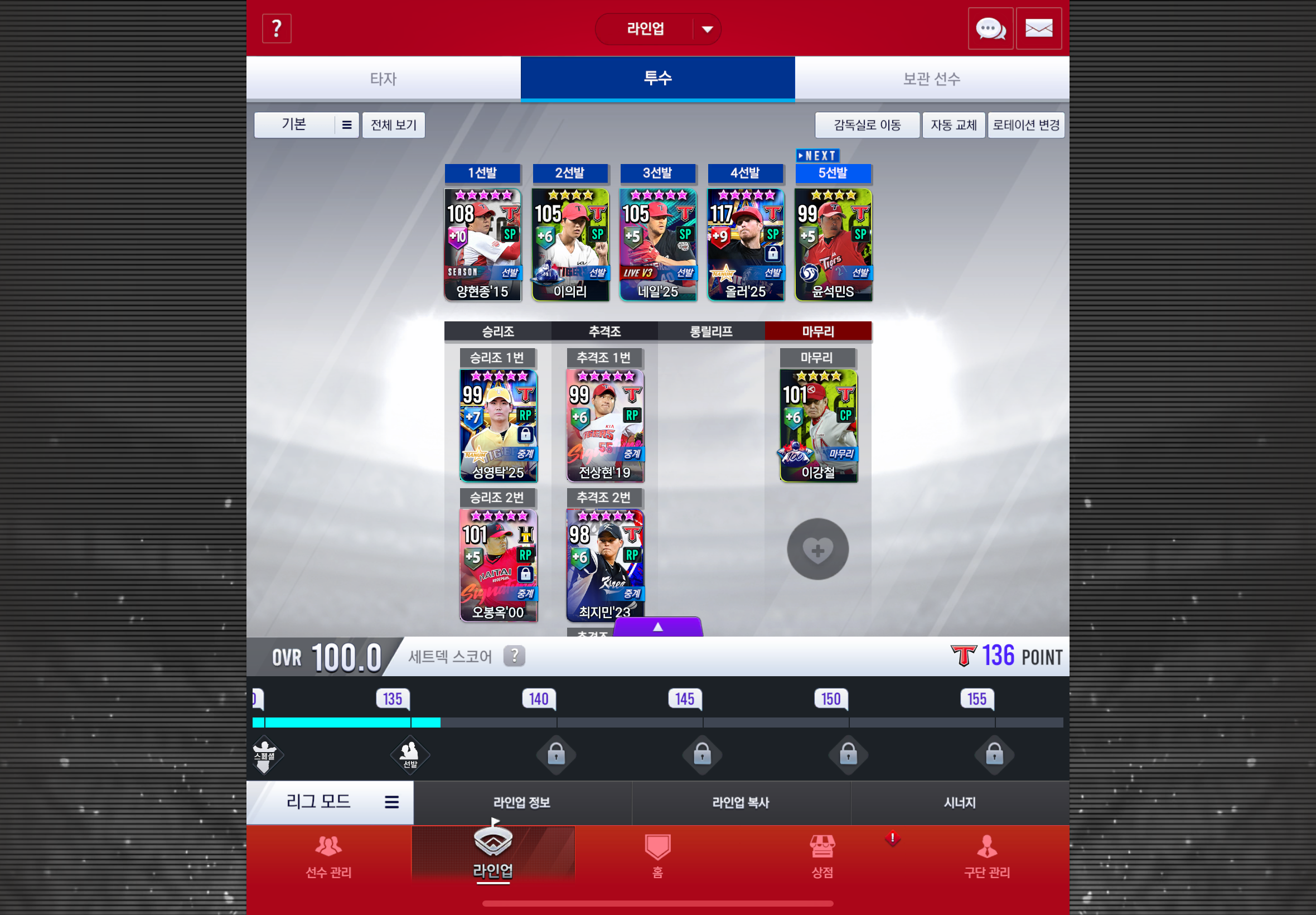 제가 게임을 처음 시작한 날부터 지금까지 한 번도 변함없는 우리팀 1선발은 양현종 2선발은 이의리입니다!