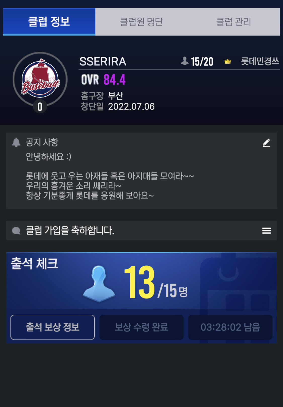[OVR 83이상] SSERIRA 클랜원 모집해요 :) 롯데 쎄리라!! (15/20)