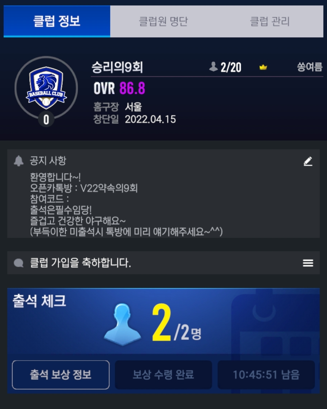 밑에 캡쳐는 클럽장,부클럽장의 열심히 하고 있는 모습입니다~