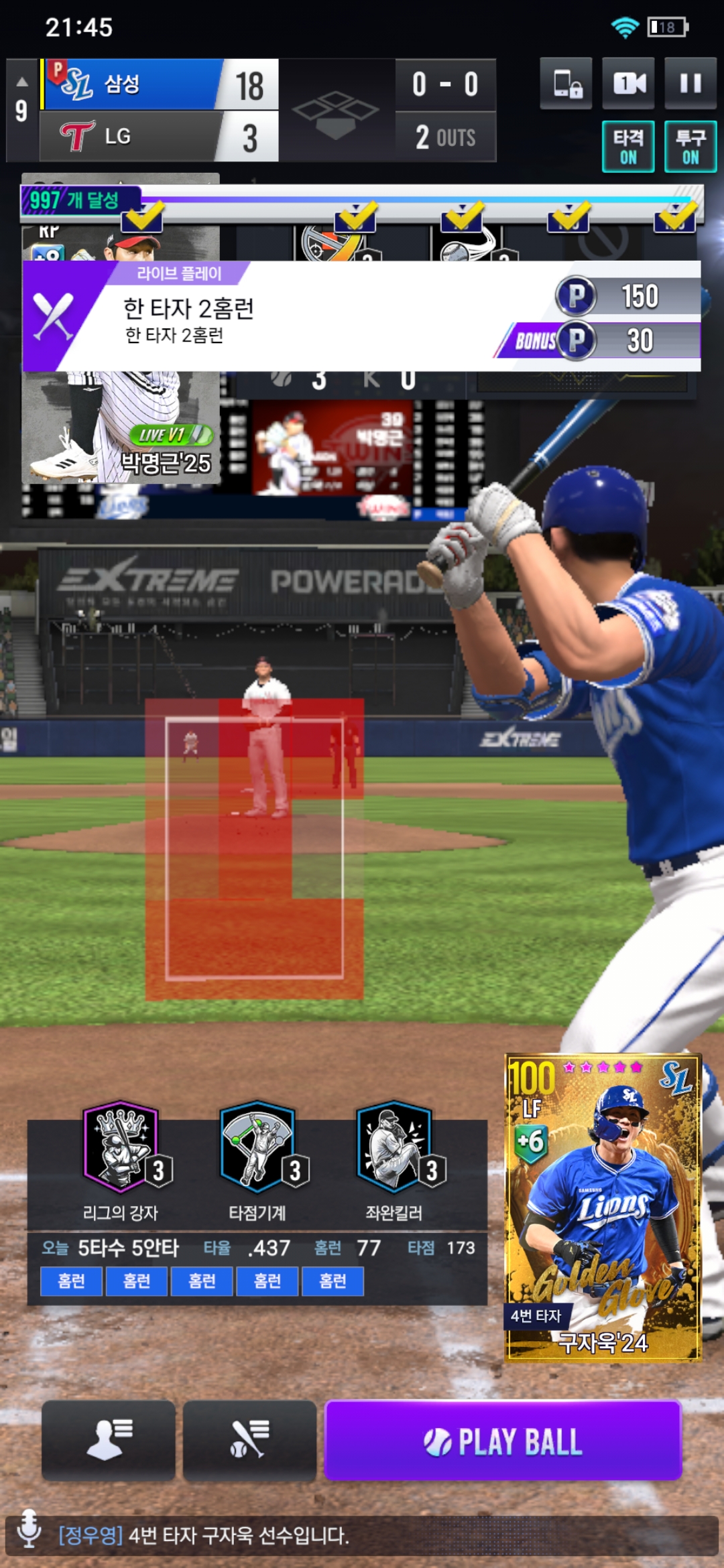마스터3 플레이오프 1차전 5연타석 홈런 10타점
