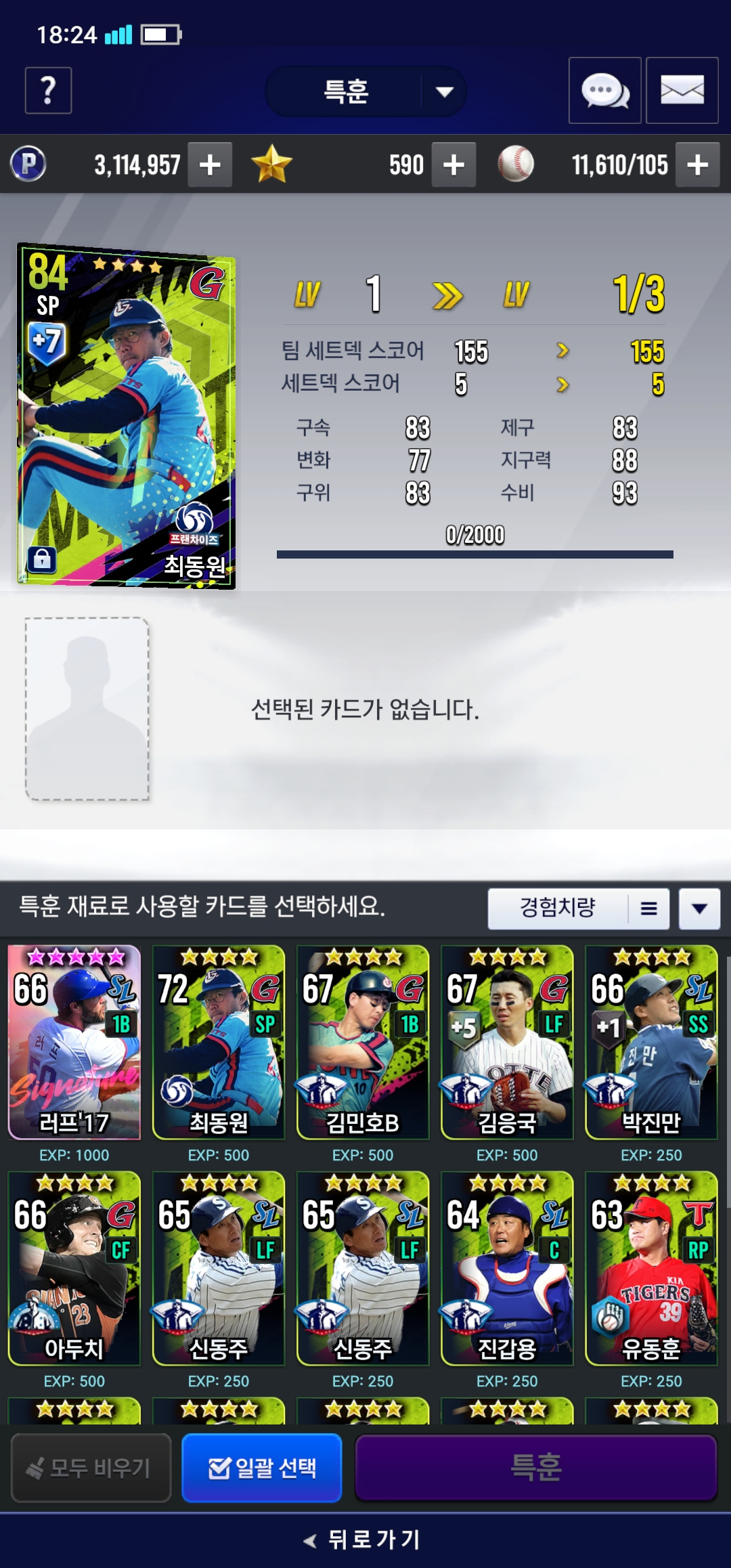특훈하려고 최동원 픽 했는데 특훈 경험치 500밖에 안 올려주네요… 원래 동일카드도 500밖에 안 올려주나요?
