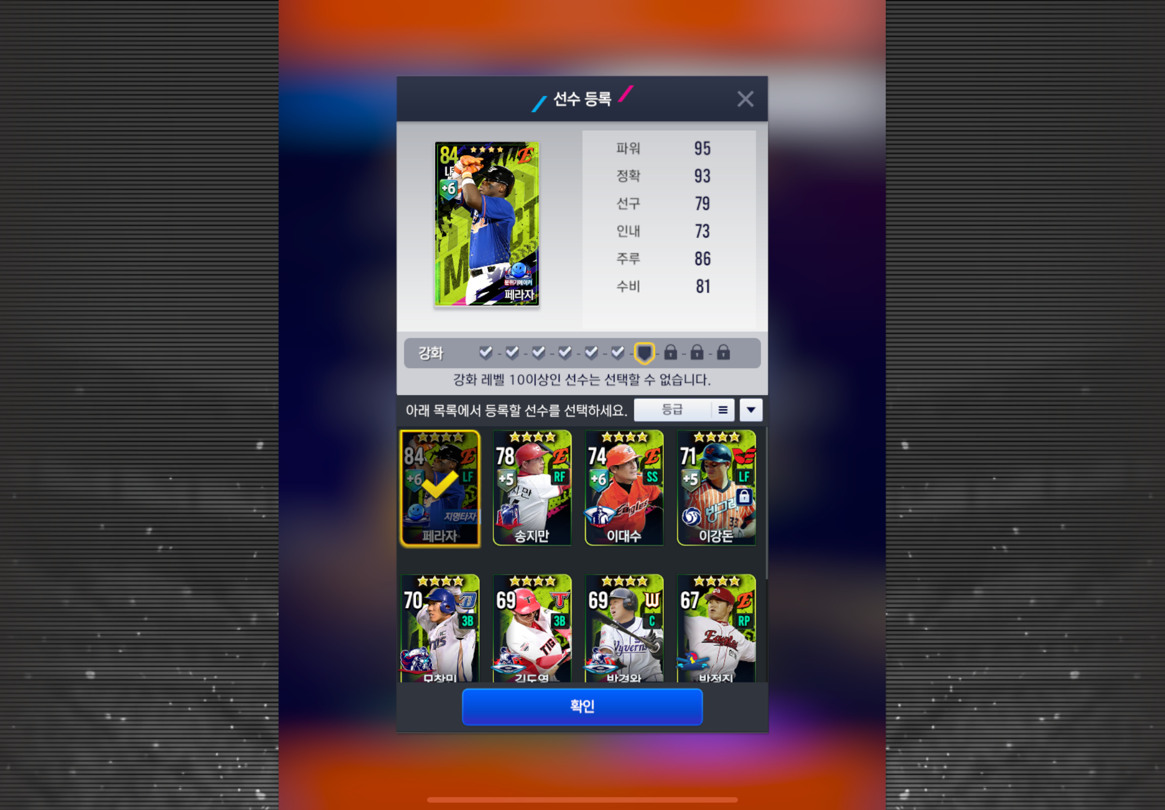 처음에 이정훈 7카에서 전지훈련으로 강화 진행한 뒤 다음 날 보니 강화가 안 돼있길래 제 실수인 줄 알고 그냥 직접 강화로 붙였는데 방금 페라자를 등록한 후 다시 보니 진행이 안 되고 토큰만 2번 날렸네요 이거 꼭 복구해주십시오