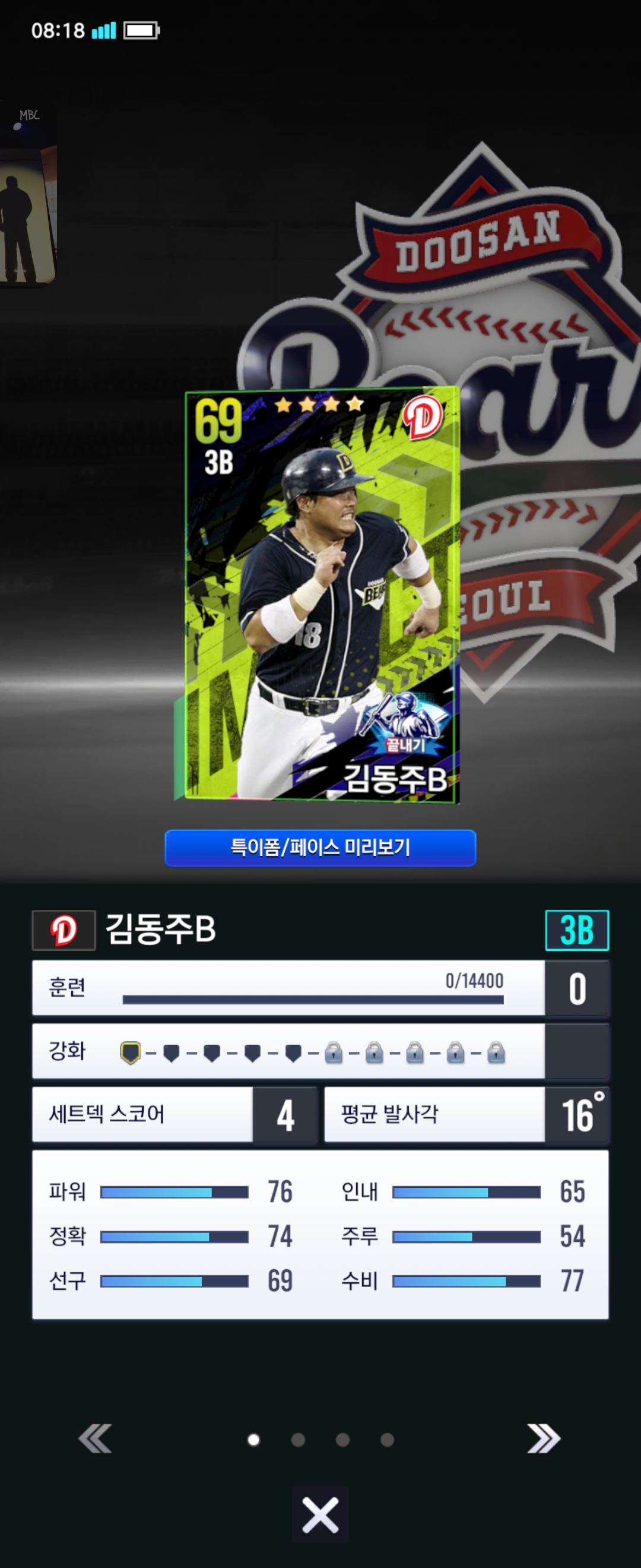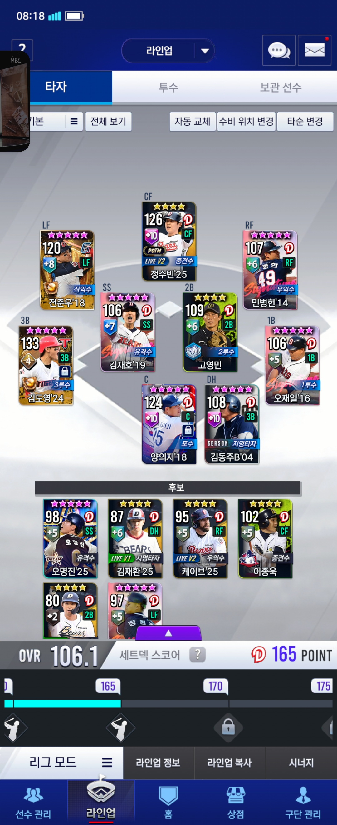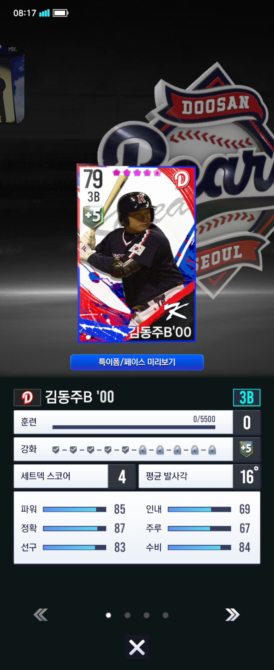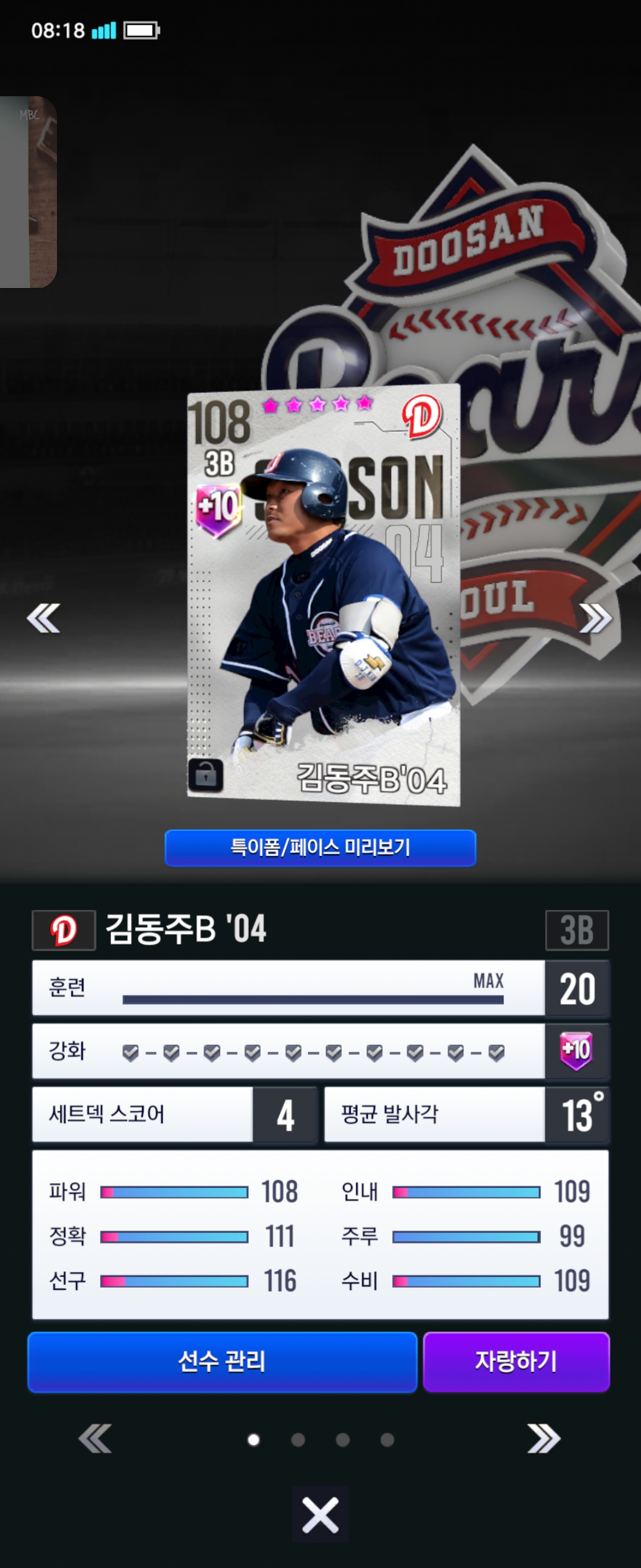 주장으로 쓸수있는게 김동주만있어서 쓰고있었는데 최근에 양의지,정수빈 만들기도하고 김동주가 몇개 더 떠서 고민중입니다.