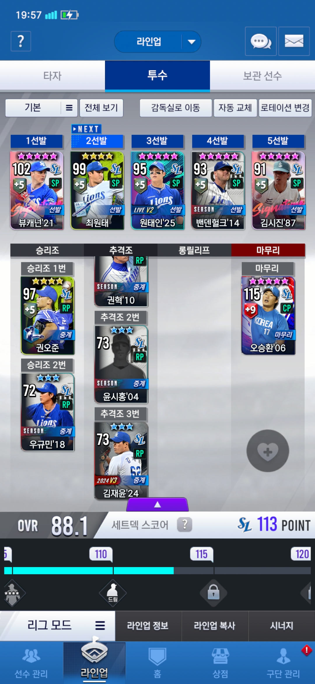 투수가 좀 약해서 투수 얻고 싶은데 익성이 형이 곧 10강이라 3각 하는것도 고민되네요…