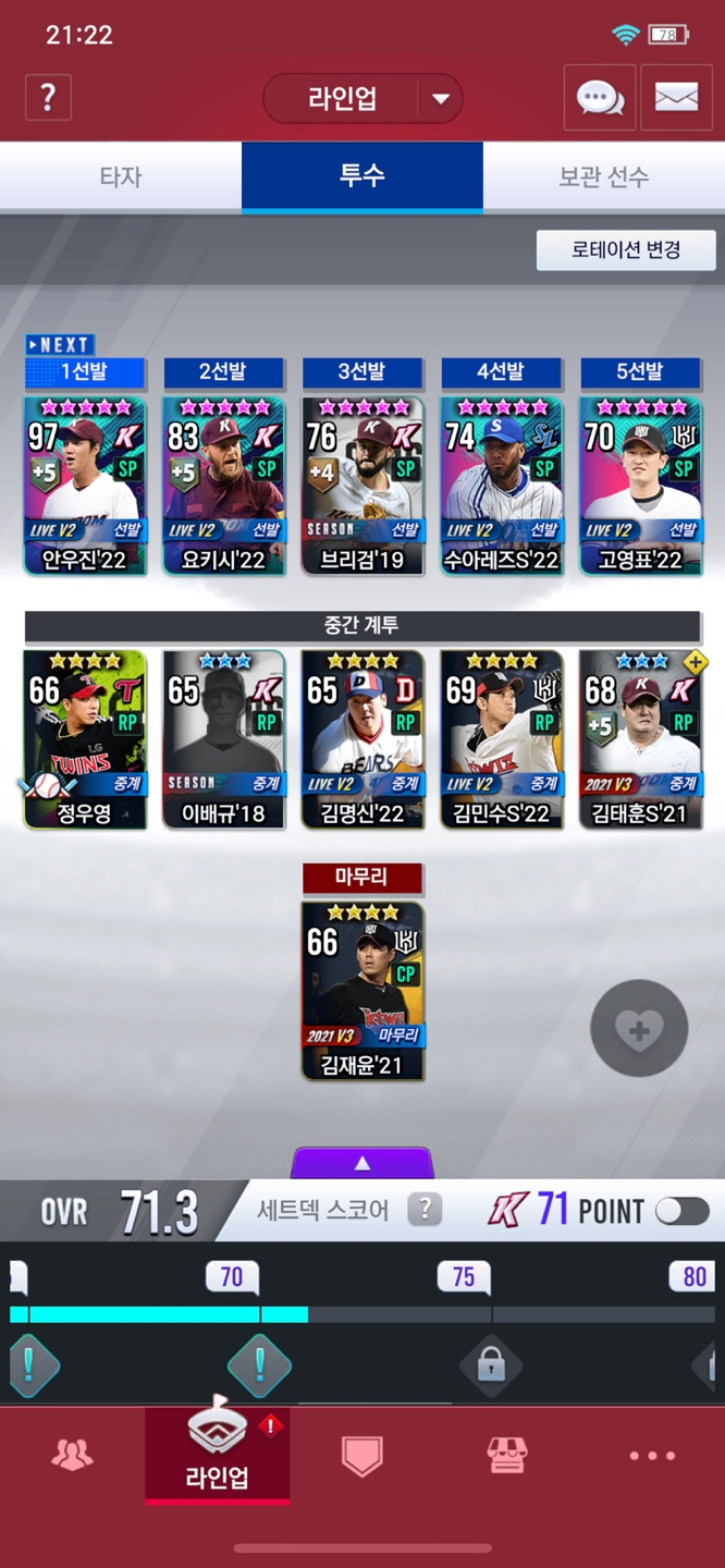그리고 타자쪽은 어느정도 보이는데 투수 중계진을 누구 써야 할 지 모르겠어요
