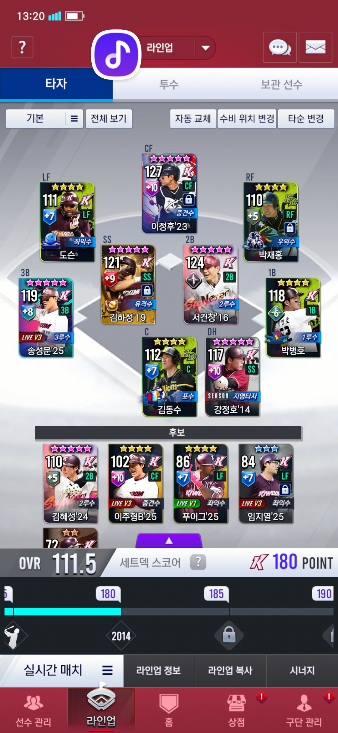 도슨은 여사얻어서 계승 생각중, 국정후는 시그or골글 22 아닌이상 계속 쓸생각, 박재홍은 베테랑 얻으면 계승, 송성문은 top3나 베테랑 얻으면 키울예정, 박뱅은 국소권이나 골글얻지않는 이상 베포얻고 계승 생각중,포수는 박경완'00 얻는거 아니면 계속 쓸까 고민중, 강정호는 국소권먹으면 소집예정 입니다.