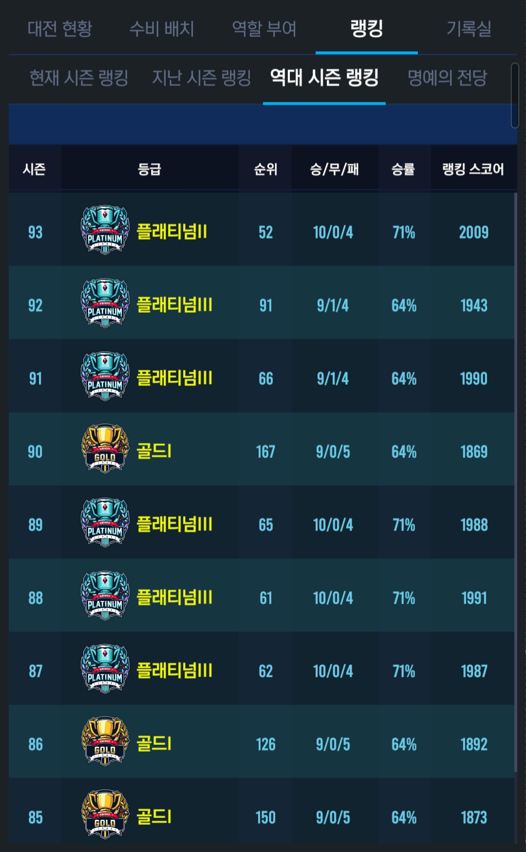 1) 랭첼 이전 시즌 in1200이상 (승률 6할 이상)