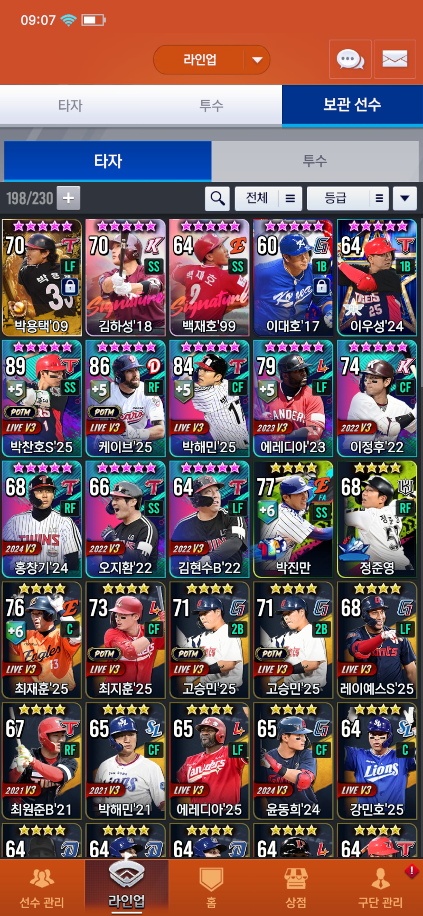 현재 사용 중인 김도영과 쓰지는 않지만 박용택 골글 카드가 있습니다.