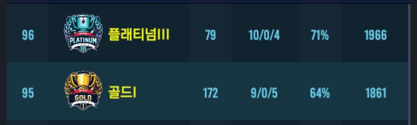 저번시즌 커하 79위 달성