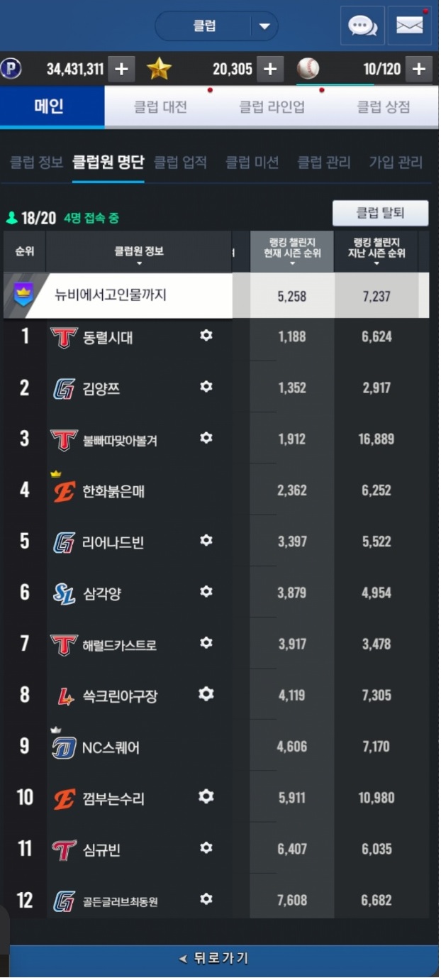 보시다시피 빡겜하는 클럽은 아니고 소소하게 친목활동 하면서