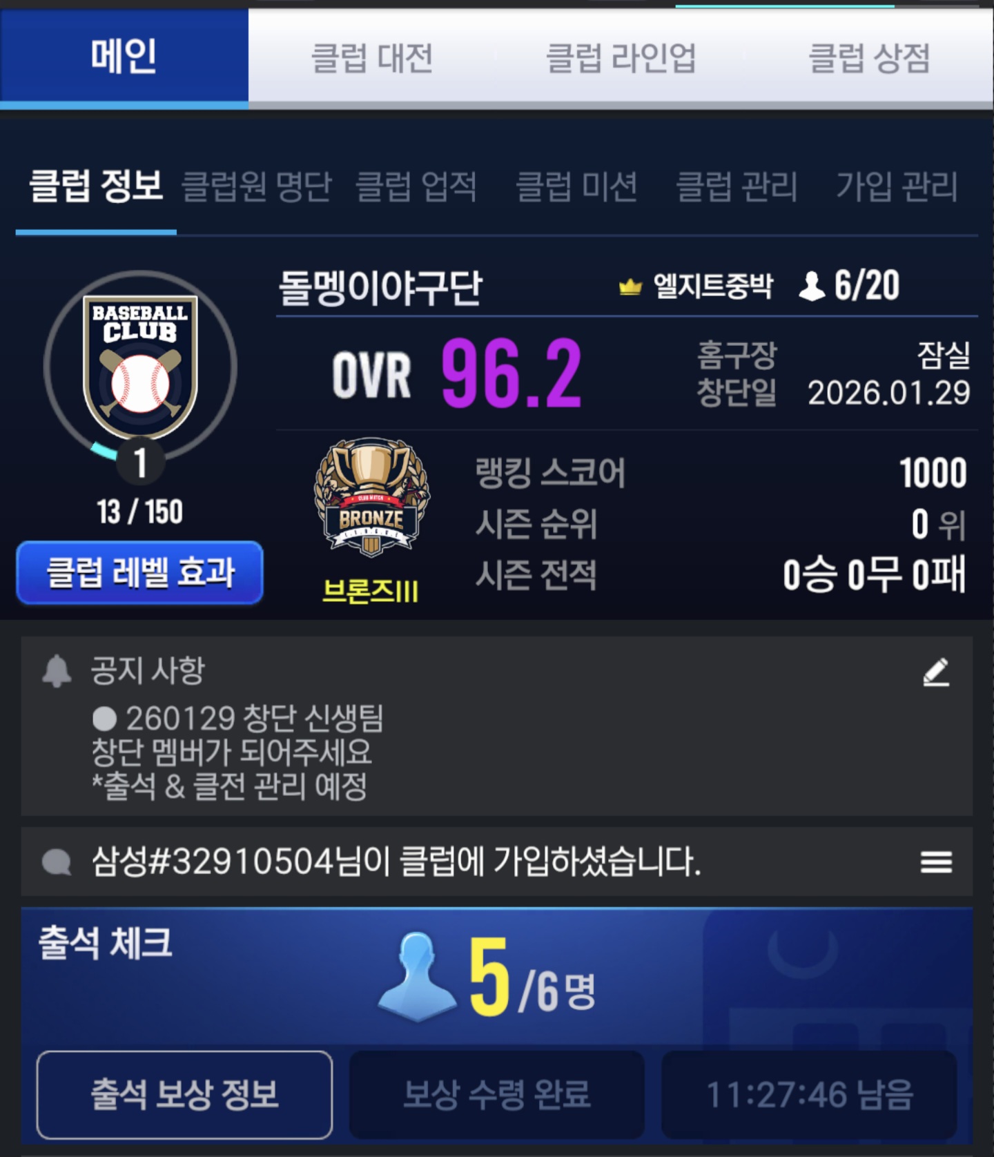 * 추후 출석 및 클럽전 관리는 철저히 할 예정입니다.