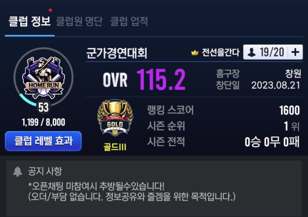 출석/클럽대전 불참으로 인한 경고 3회시 추방