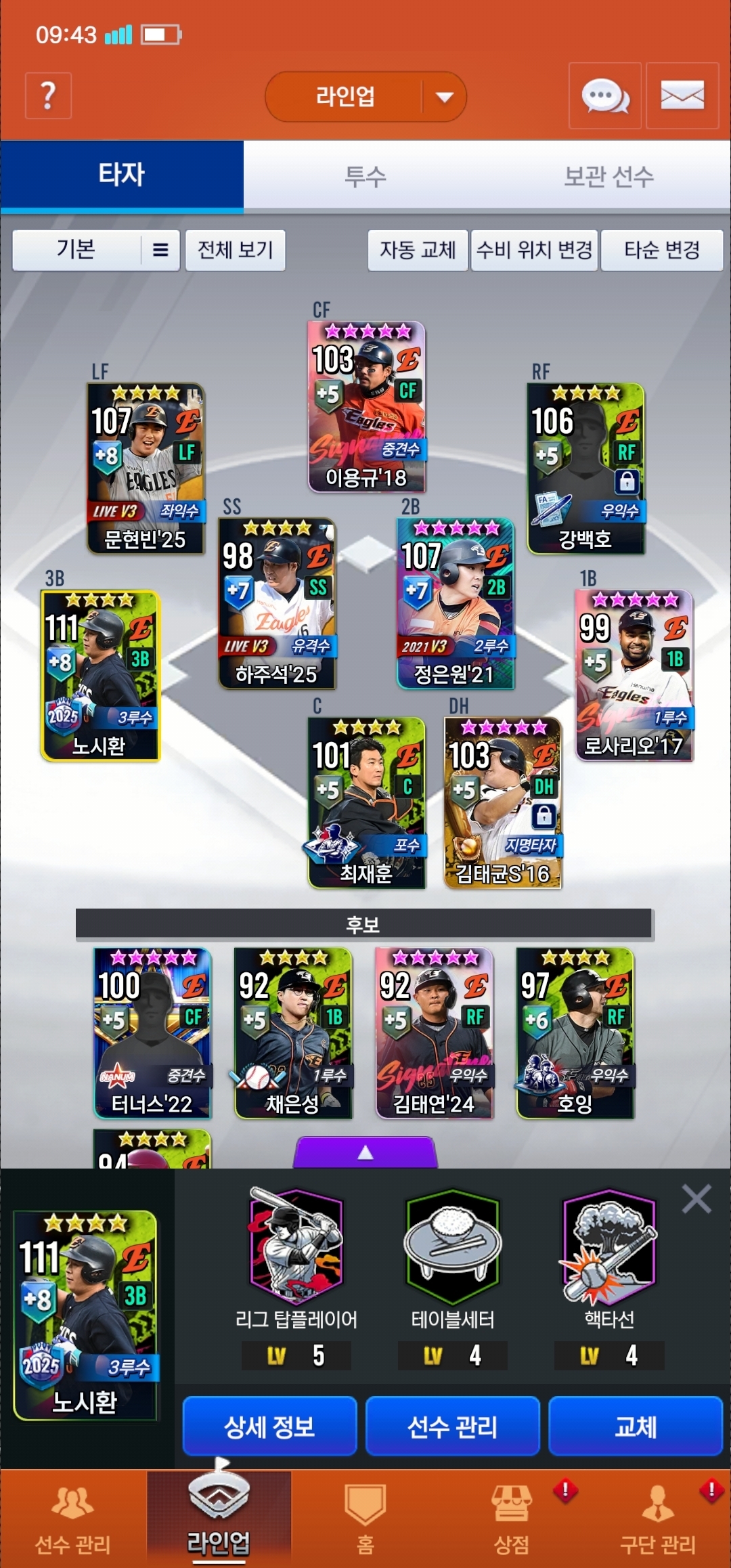 기존에 2025 TOP3 노시환 임팩트카드였거든요