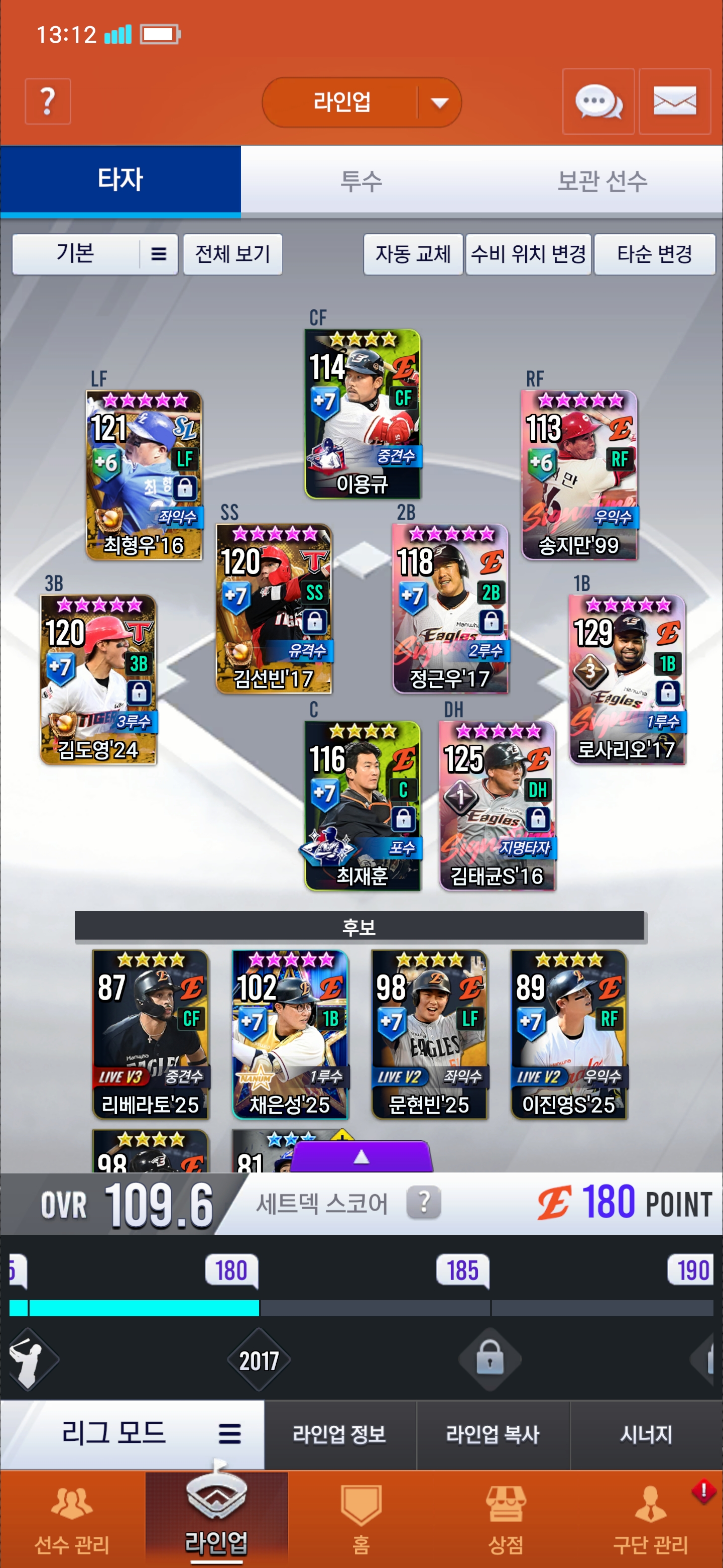 1. 1.김선빈17 최형우 17 넣고 4차교환 최정 노리기