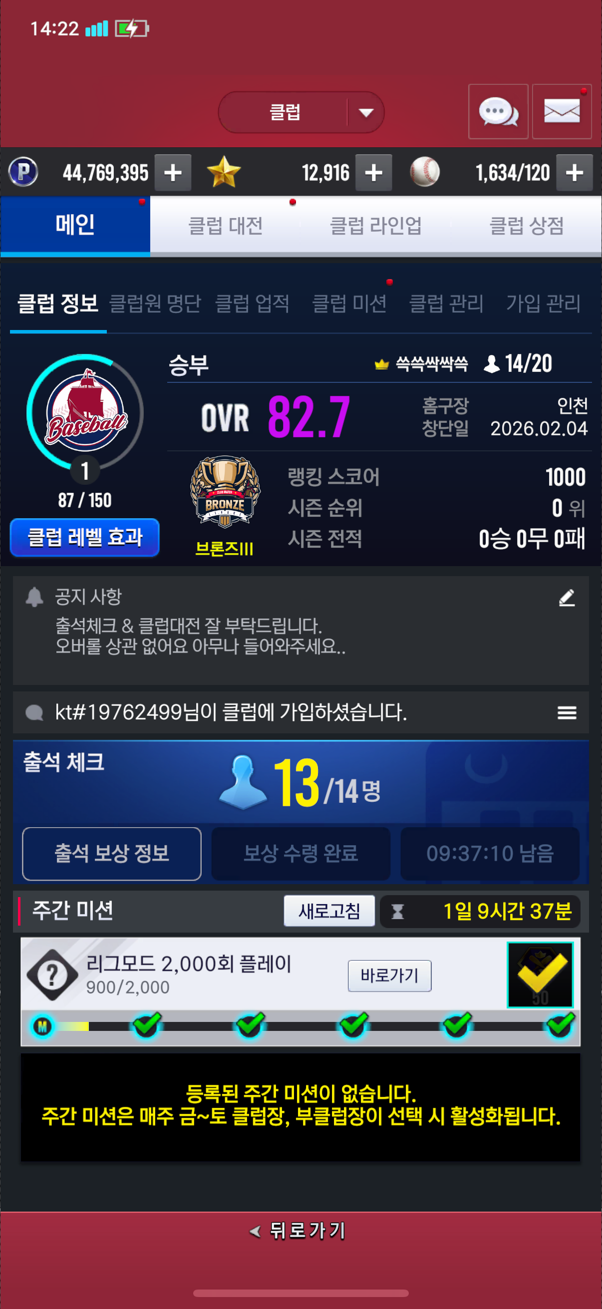 출첵과 클럽대전만 열심히 해주신다면