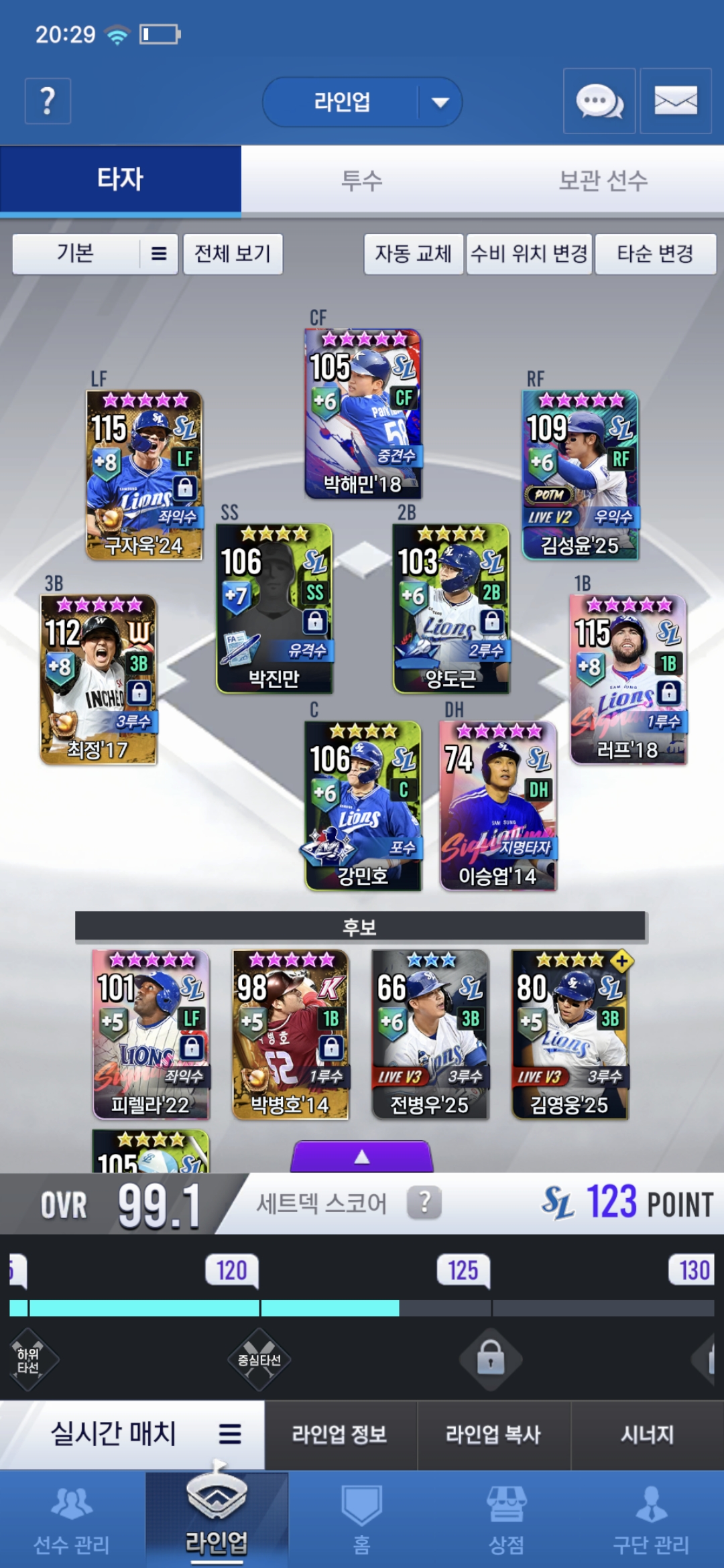라이브 디아즈 14박뱅 18러프 14승엽 중 누굴 쓸까요?