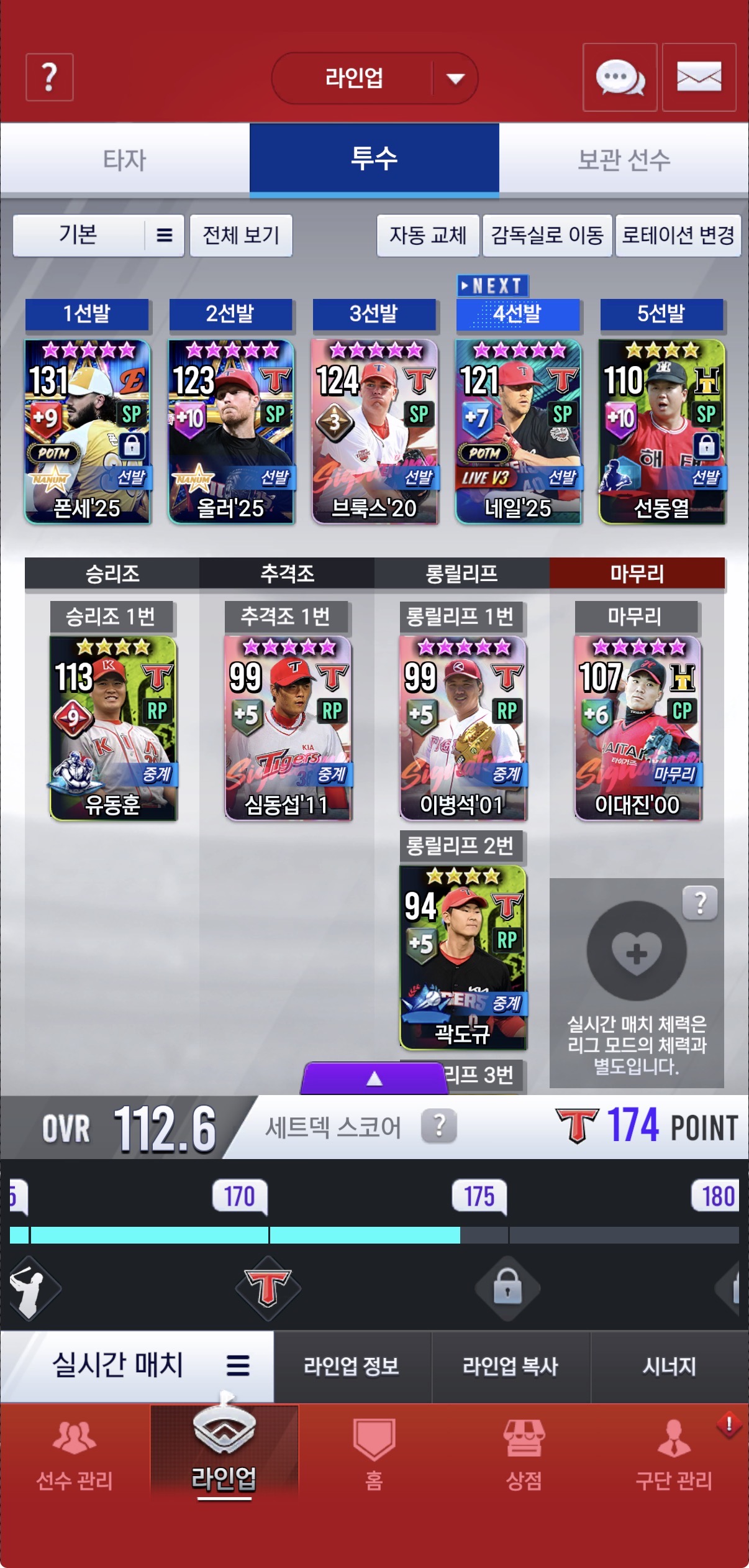 선동열은 우에 뽑아서 각성후 넘겨주려고 기다리고있어서 좌완에이스랑 마당쇠 고민중인데 둘다 아직 키워놓은거 없어서 비슷한 상황입니다..! 선발 페디도 아직 못쓰고있어서 마당쇠 뽑으려고 하는데 추천 부탁드립니다!