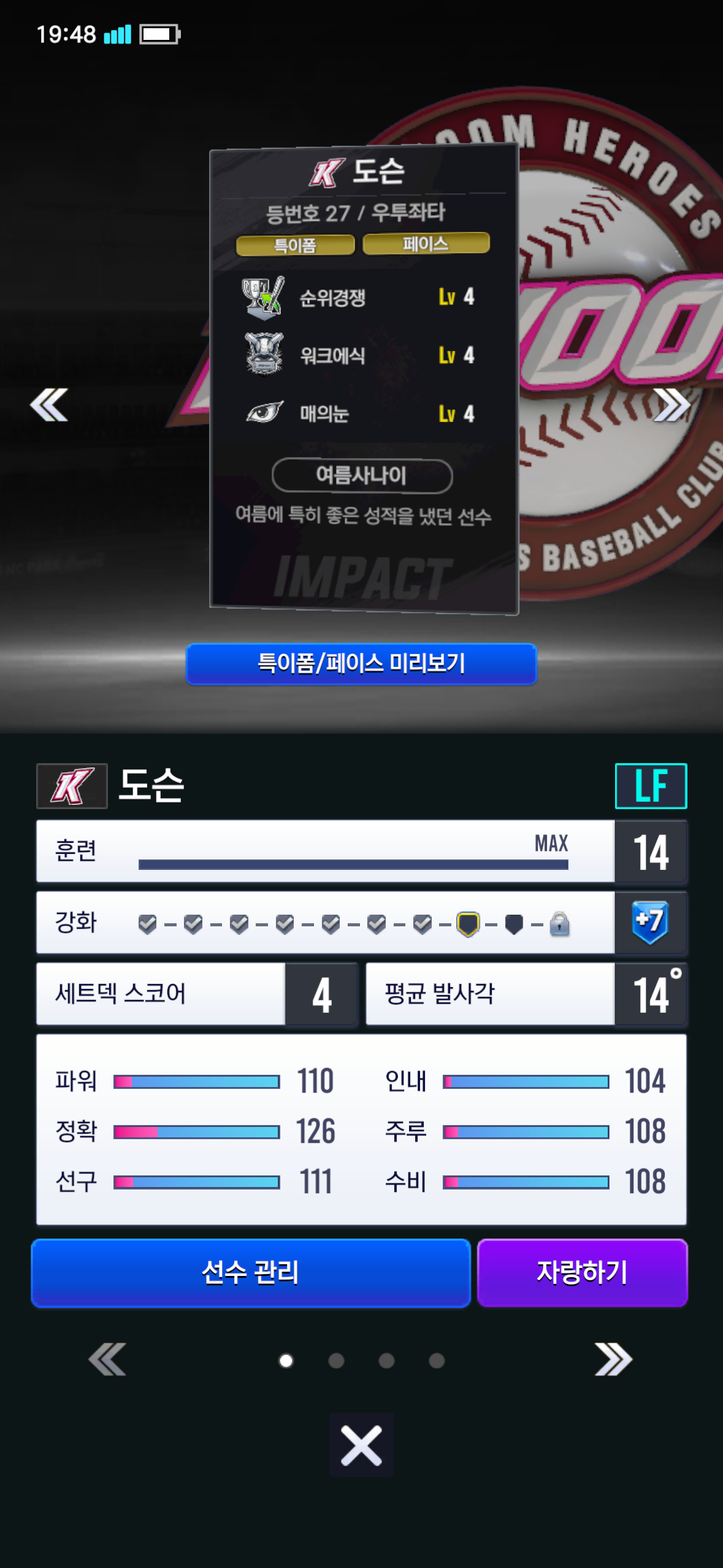 셋 다 셋포 씌운거고, 현재는 24키움이지만 계속 24를 할지는 모르겠네요. 현재 셋중에서 둘을 좌익수나 지타로 넣어야 하는데, 며칠 이따가 영입시그 14건창 달릴거라서 서건창까지 하면 누굴 넣을까요 ㅠ