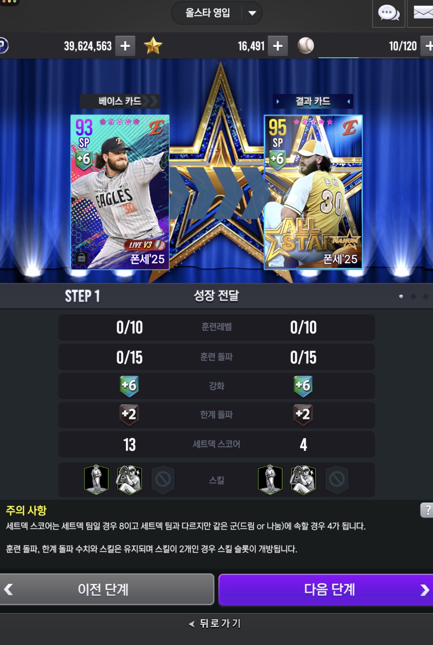 포지션 특훈 강화 재료까지 완화되어서