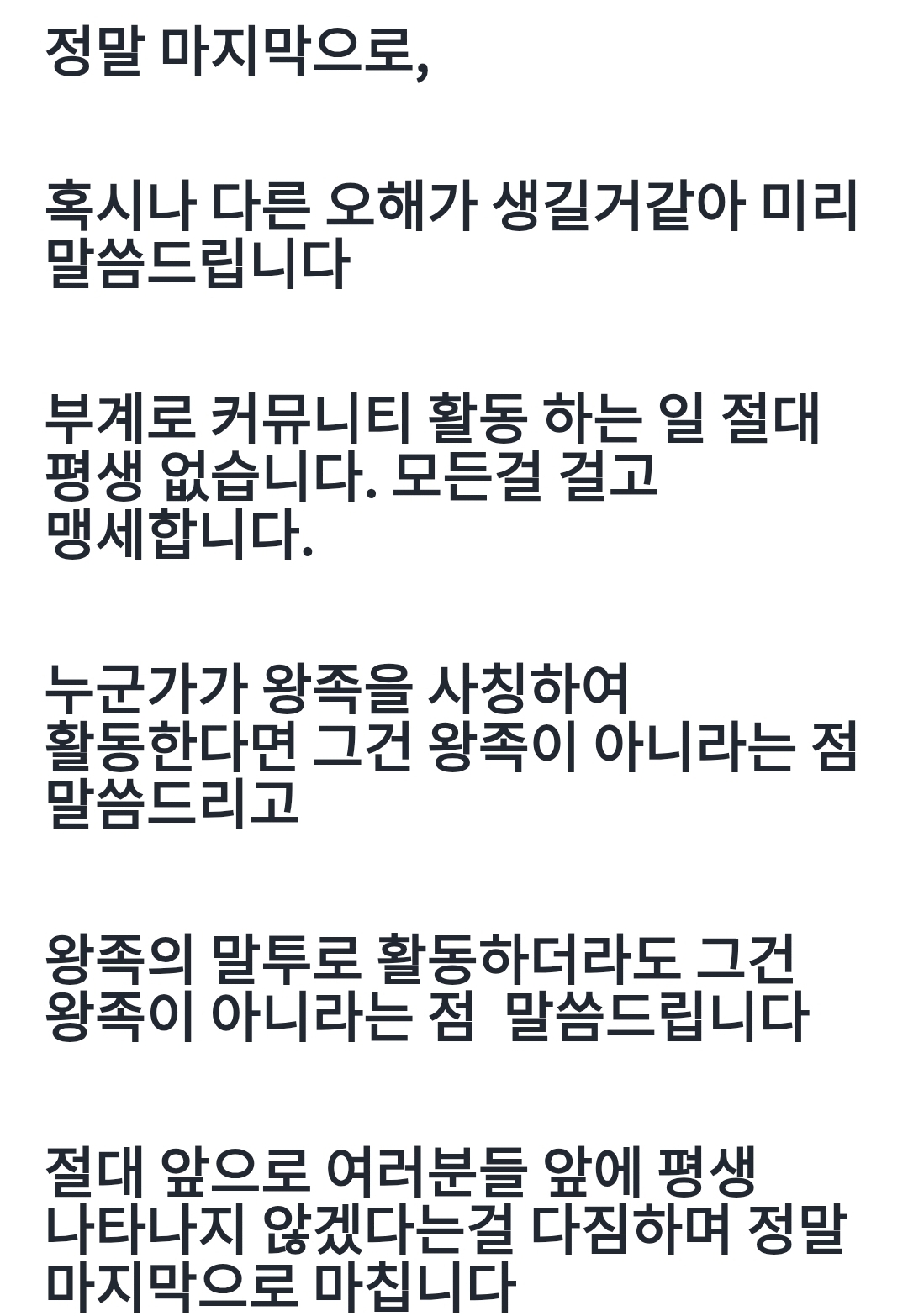 그러니 여러분은 진짜 왕족을 사칭하는 가짜 왕족에게 관심을 주지 마시고 현혹 되지 마시기 바랍니다