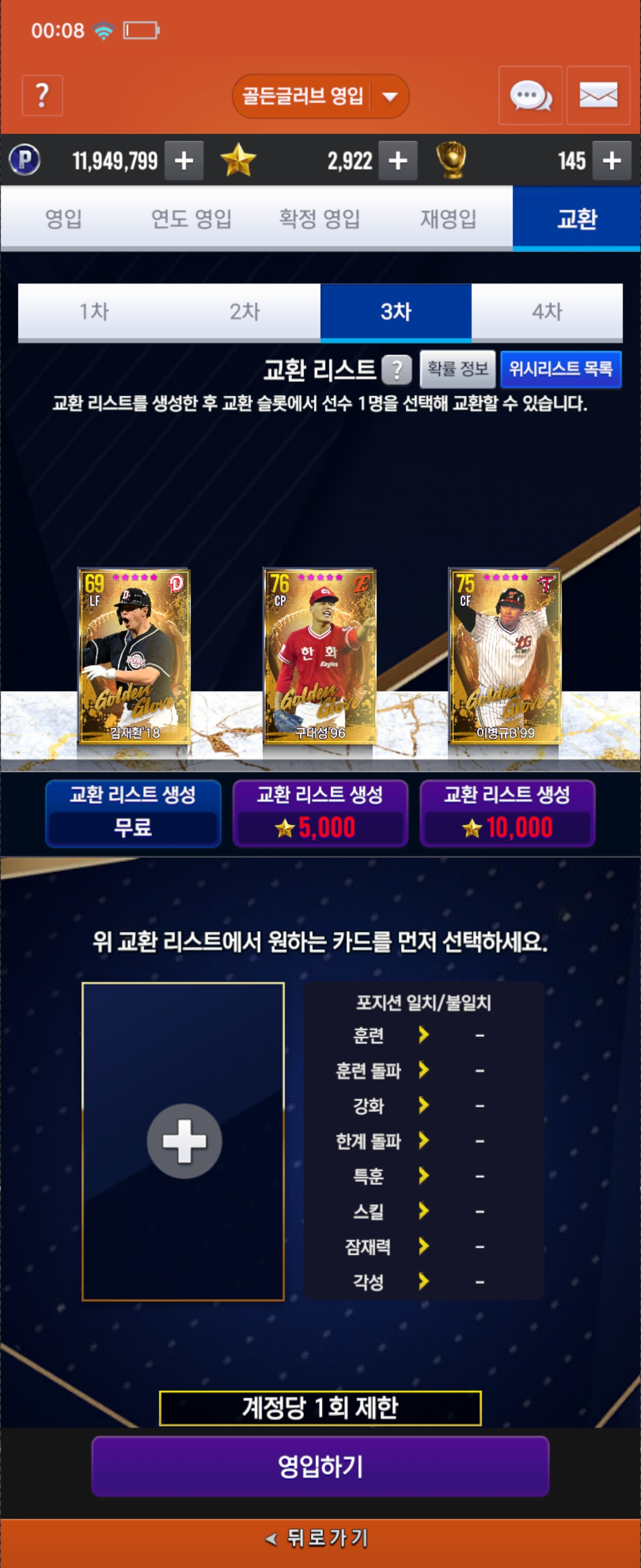 예정이고 3차교환 이렇게 나왔는데, 18약 먹고 3각할지 이병규 먹을지 매우 고민입니다
